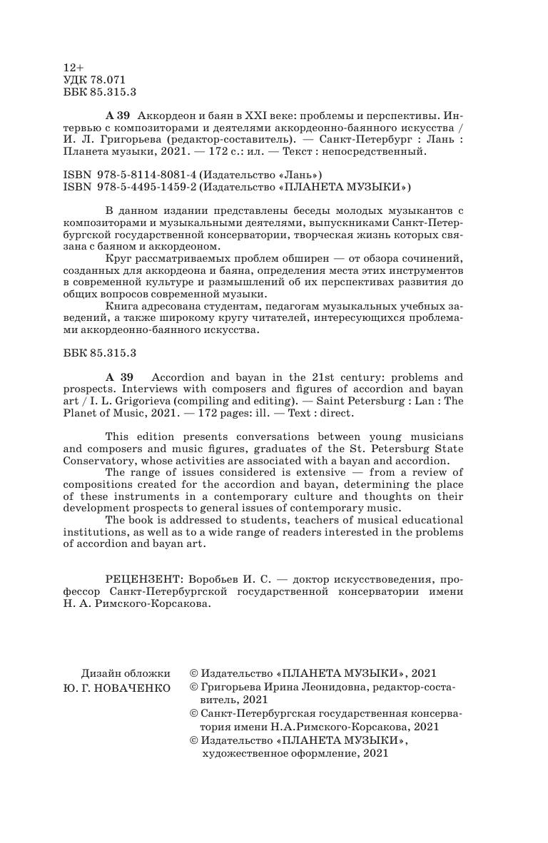 The book is addressed to students, teachers of musical educational institutions, as well as to a wide range of readers interested in the problems of accordion and button accordion art.