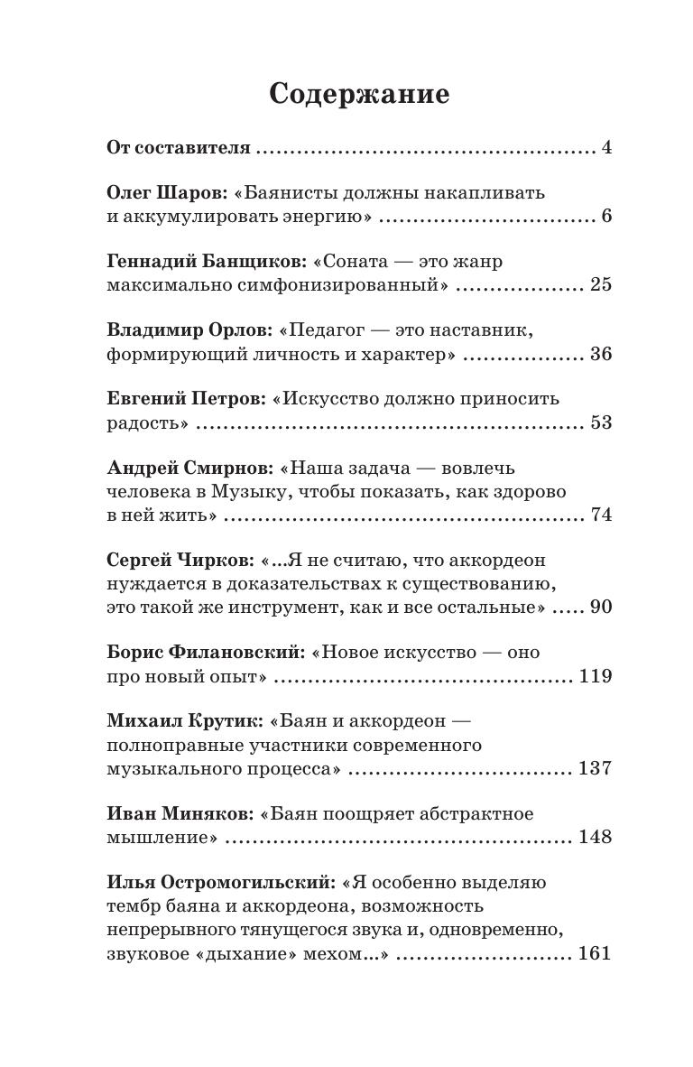 В данном издании представлены беседы молодых музыкантов с композиторами и музыкальными деятелями, выпускниками Санкт-Петербургской государственной консерватории, творческая жизнь которых связана с баяном и аккордеоном