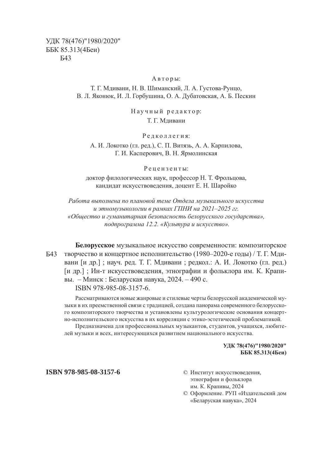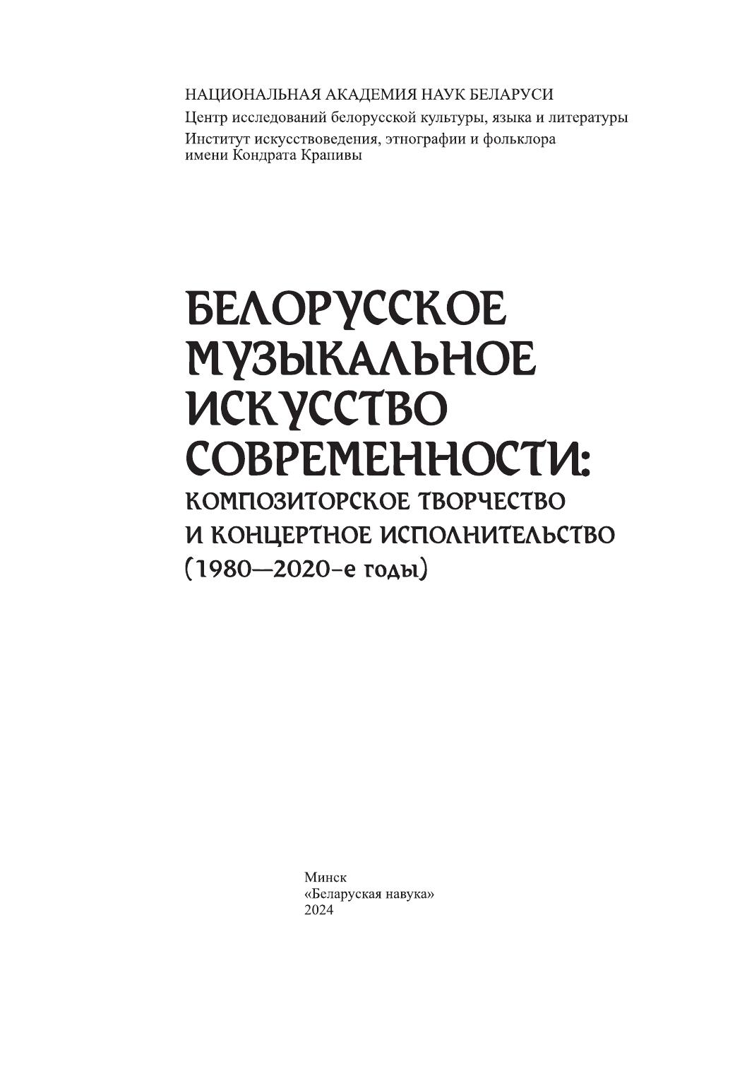 Белорусское музыкальное искусство современности: композиторское творчество и концертное исполнительство (1980-2020-е годы)