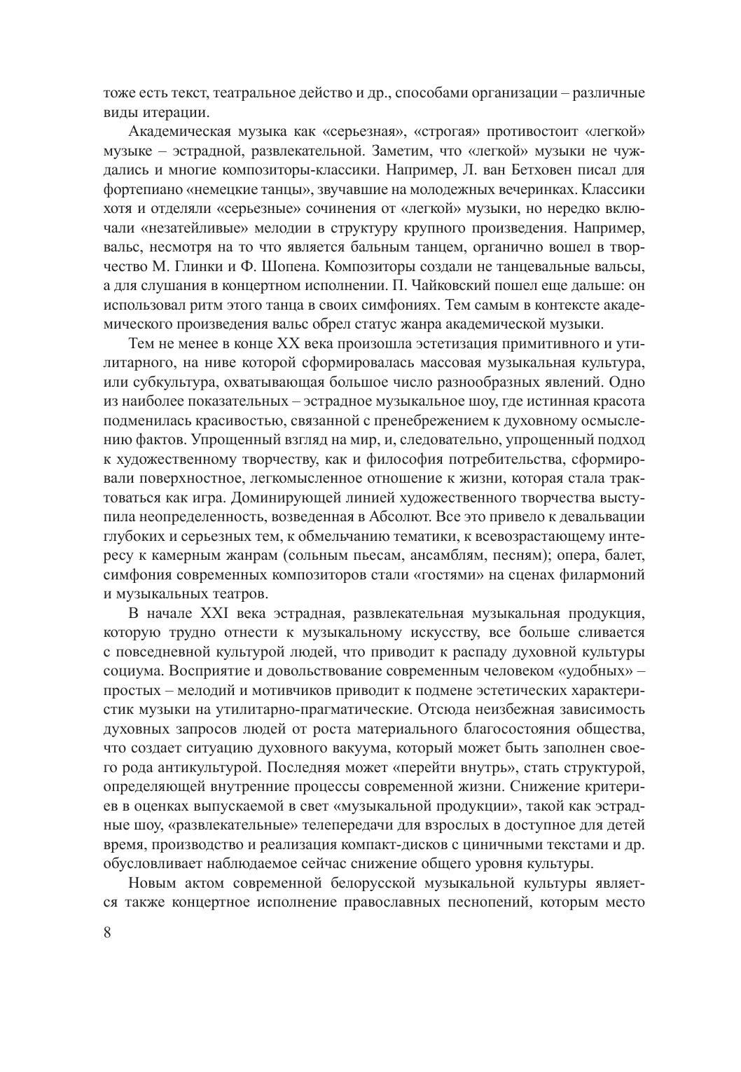 Рассматриваются новые жанровые и стилевые черты белорусской академической музыки в их преемственной связи с традицией, создана панорама современного белорусского композиторского творчества и установлены культурологические основания концертно-исполнительского искусства в их корреляции с этико-эстетической проблематикой. Предназначена для профессиональных музыкантов, студентов, учащихся, любителей музыки и всех, интересующихся развитием национального искусства.