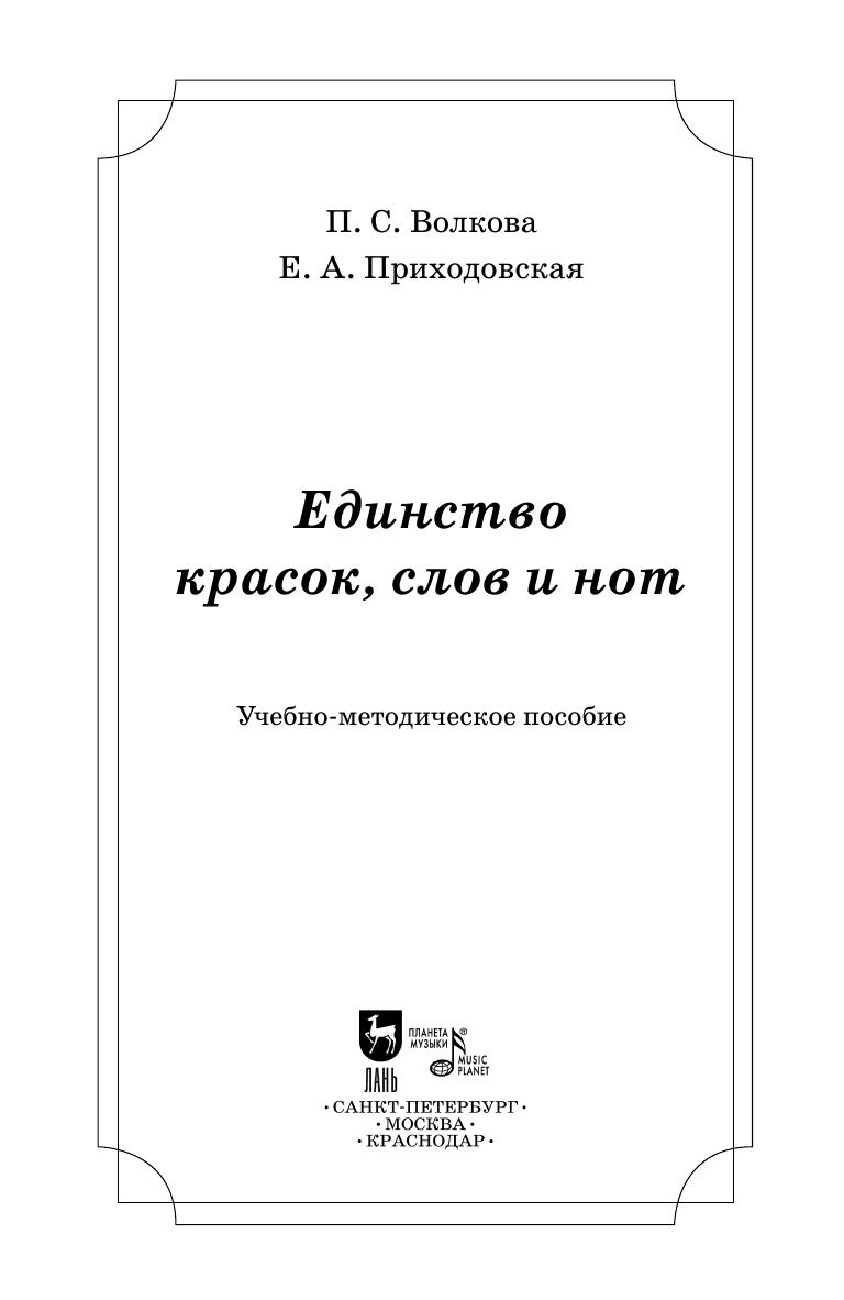 Пособие «Единство красок, слов и нот» построено на основе синтеза искусств — музыки, поэзии и живописи. Помимо общеэстетической направленности включённого в книгу материала прослеживается последовательное освещение ряда вопросов по музыкальной грамоте. Книга может рассматриваться как домашний учебник по музыке. Его предназначение в том, чтобы занимательной беседой о музыке, поэзии и живописи расположить ребенка к восприятию искусства.