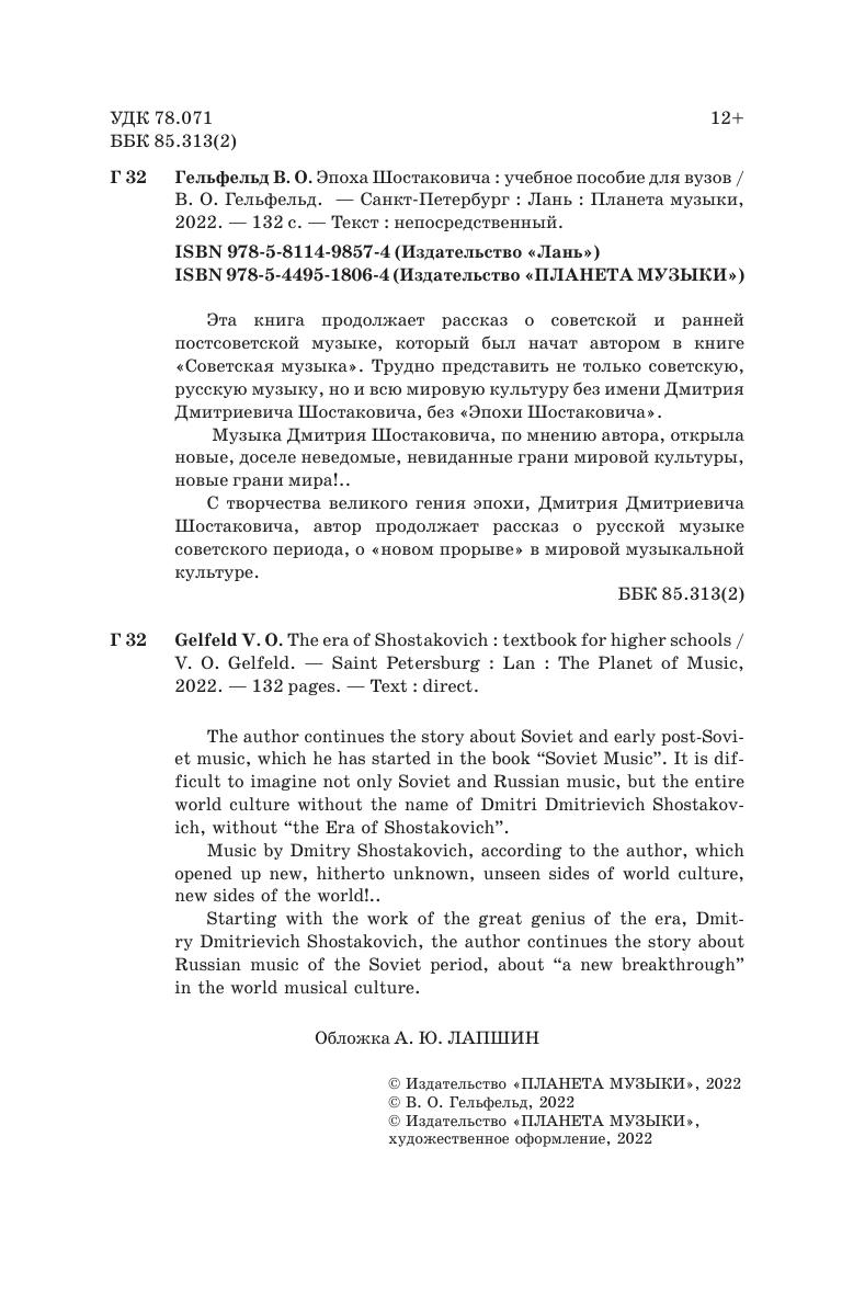 Эта книга продолжает рассказ о советской и ранней пост-советской музыке, который был начат автором в книге «Советская музыка». Трудно представить не только советскую, русскую музыку, но и всю мировую культуру без имени Дмитрия Дмитриевича Шостаковича, без «Эпохи Шостаковича».