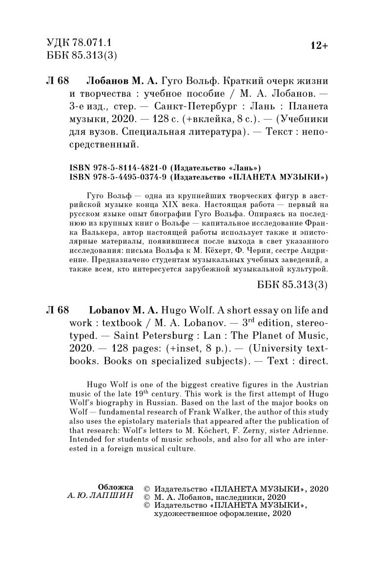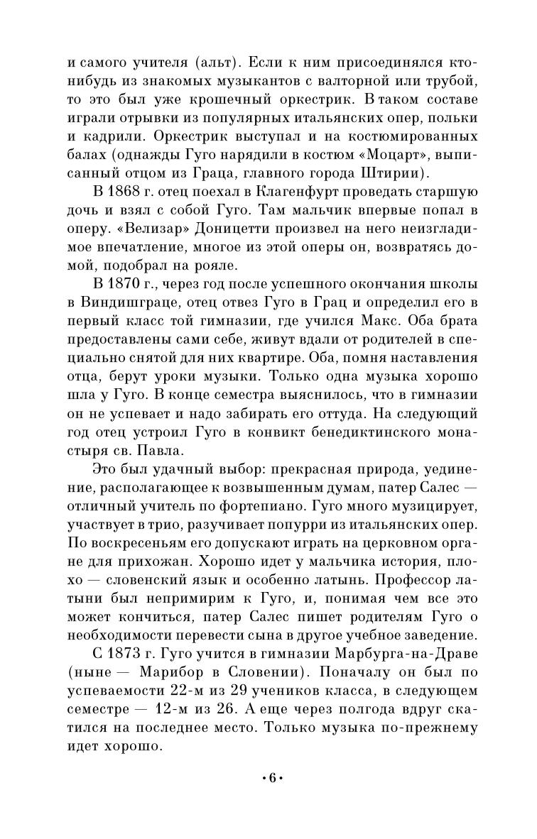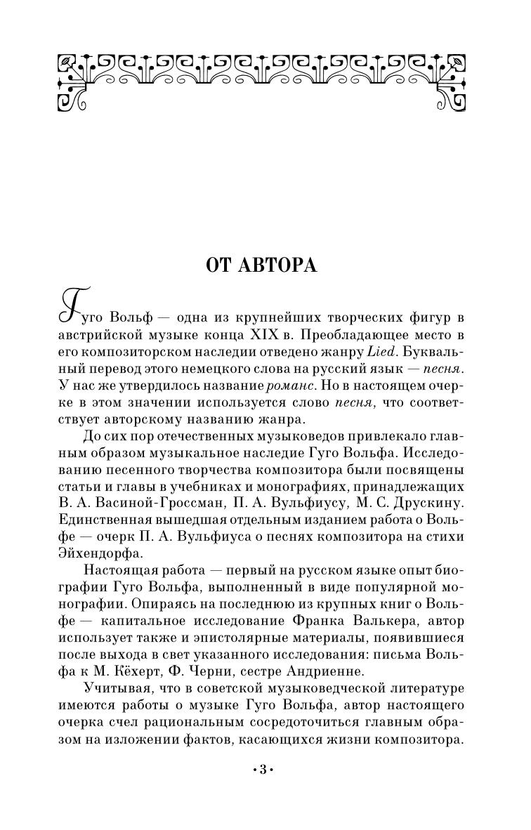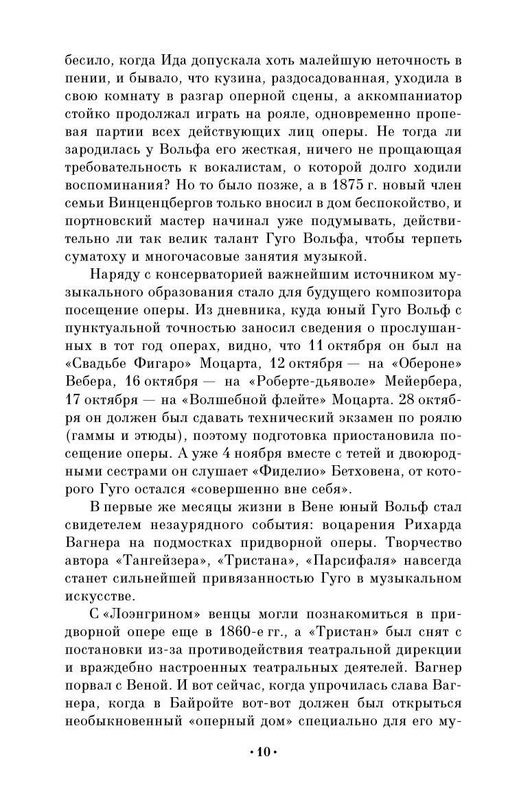 Гуго Вольф — одна из крупнейших творческих фигур в австрийской музыке конца XIX века. Настоящая работа — первый на русском языке опыт биографии Гуго Вольфа.Опираясь на последнюю из крупных книг о Вольфе — капитальное исследование Франка Валькера, автор настоящей работы использует также и эпистолярные материалы, появившиеся после выхода в свет указанного исследования: письма Вольфа к М. Кёхерт, Ф. Черни, сестре Андриенне. Предназначено студентам музыкальных учебных заведений, а также всем, кто интересуется зарубежной музыкальной культурой.