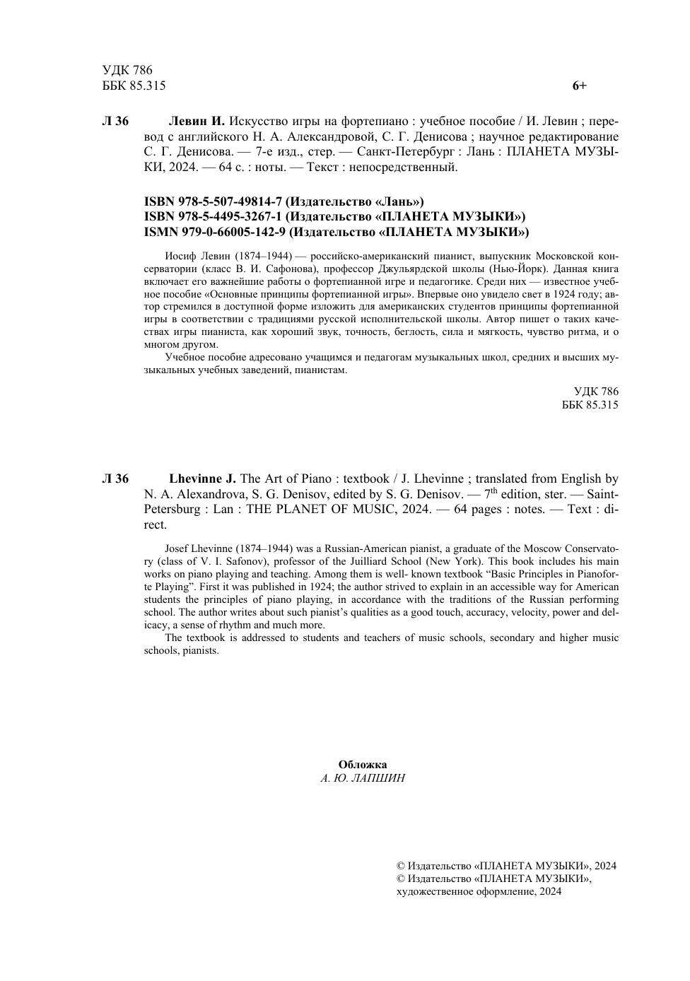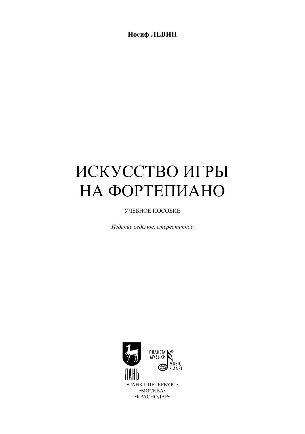 Иосиф Левин (1874 – 1944) – российско-американский пианист, выпускник Московской консерватории (класс В. Сафонова), музыкальный педагог, преподававший в Джульярдской школе (Нью-Йорк). Данная книга – известное учебное пособие по фортепианной игре. Впервые оно увидело свет в 1924 году, автор стремился в доступной форме изложить для американских студентов принципы фортепианной игры в соответствии с традициями русской исполнительской школы. Автор пишет о таких качествах игры пианиста как хороший звук, точность, беглость, сила и мягкость, чувство ритма и о многом другом. Учебное пособие адресовано учащимся и педагогам музыкальных школ, средних и высших музыкальных учебных заведений, пианистам.