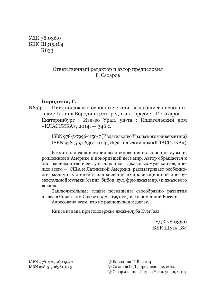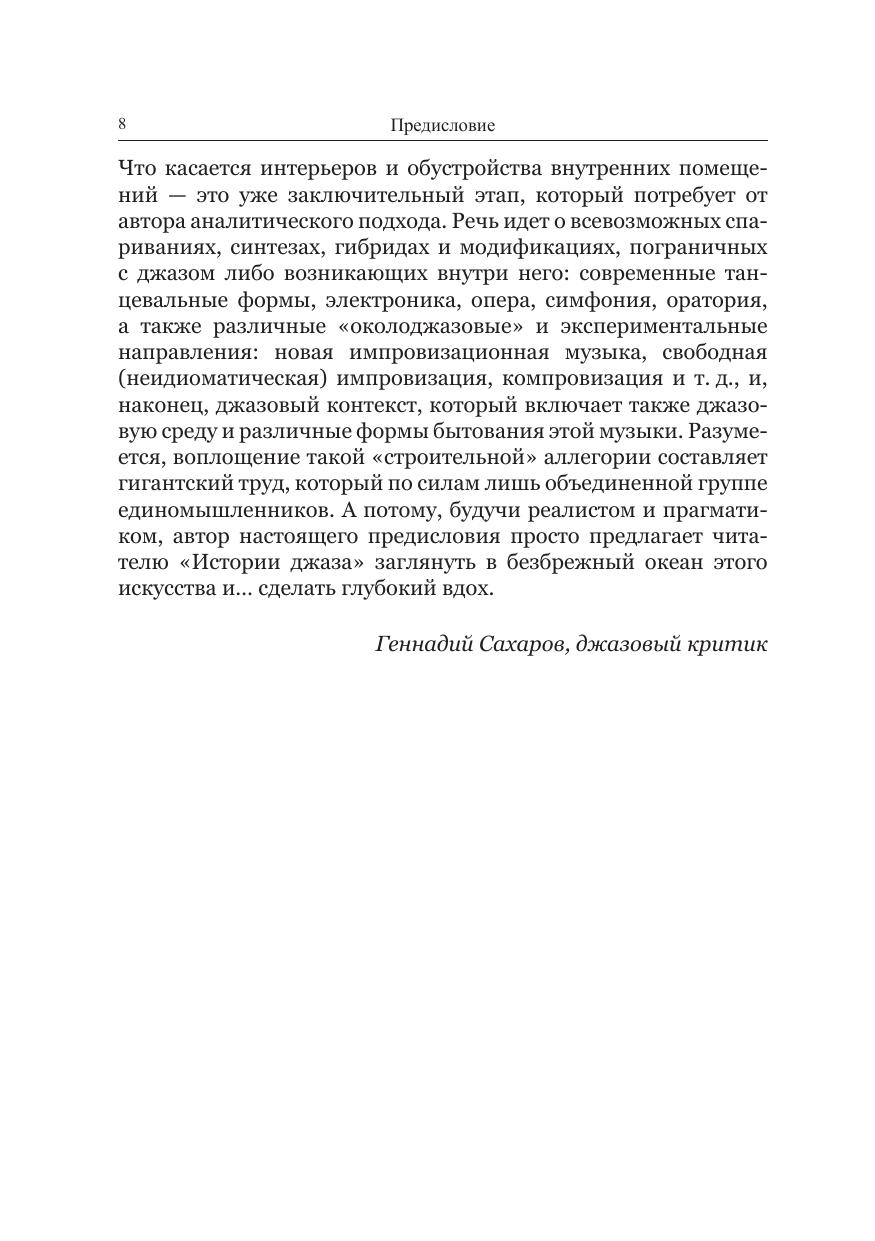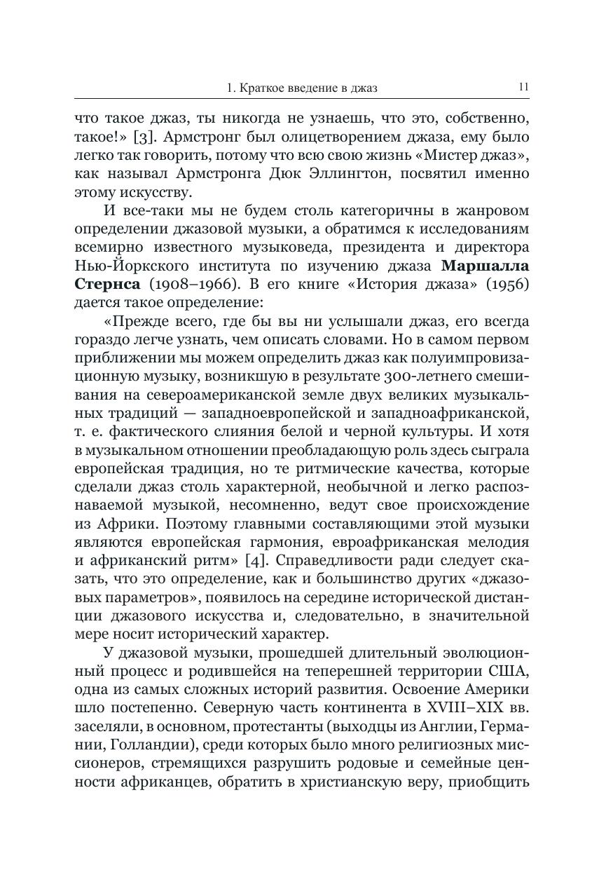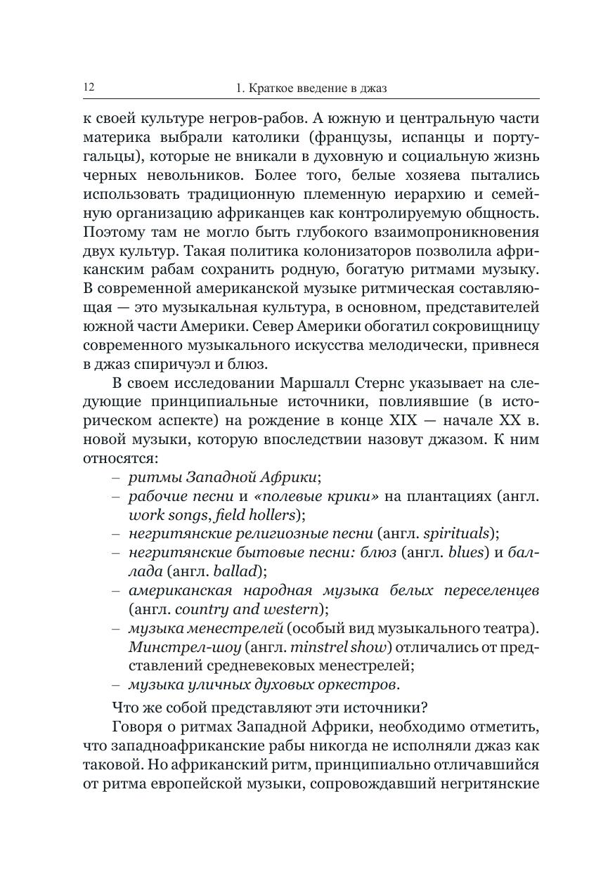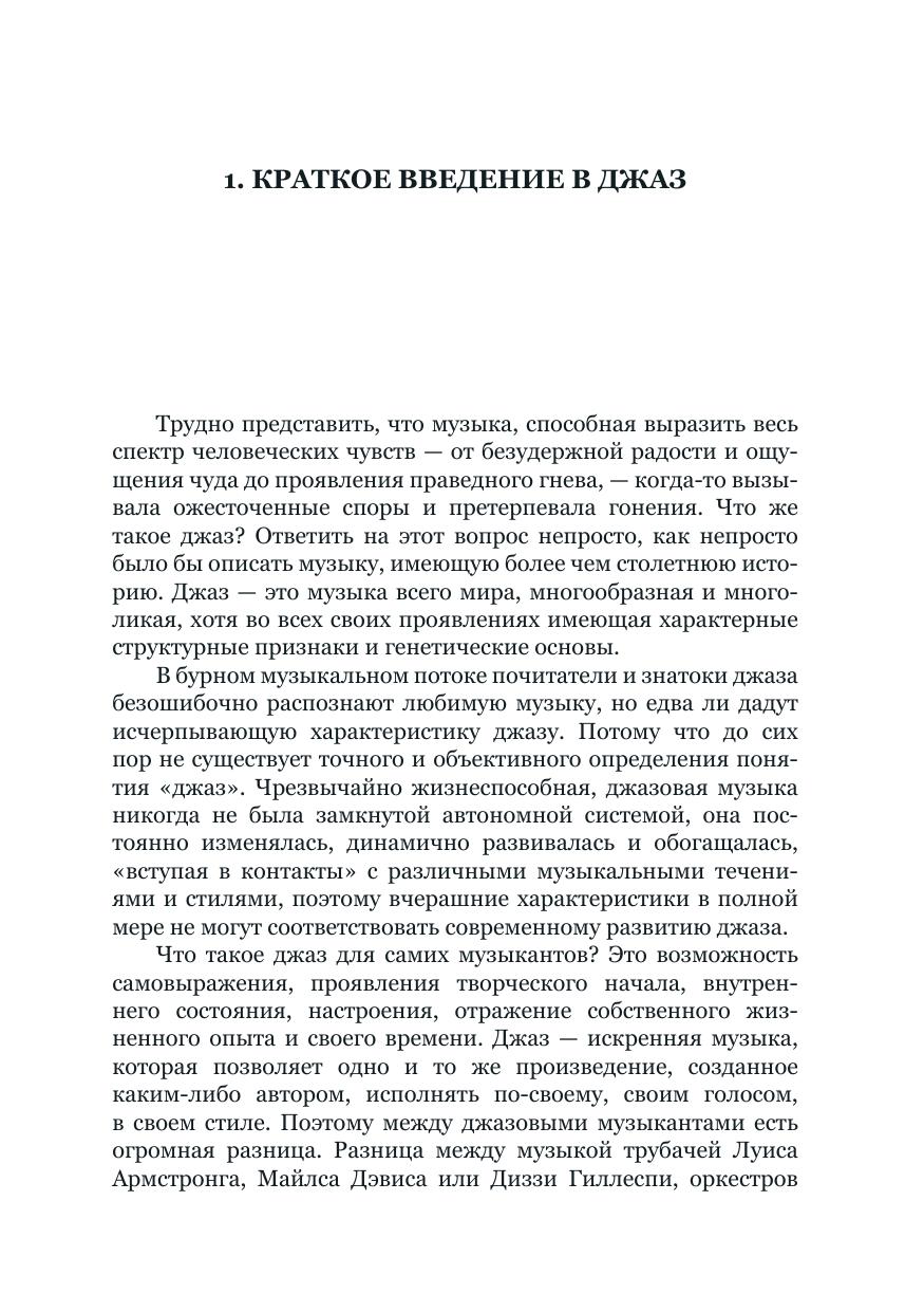 В книге описана история возникновения и эволюции музыки, рожденной в Америке и покорившей весь мир. Автор обращается к биографиям и творчеству выдающихся джазовых музыкантов, прежде всего – США и Латинской Америки, рассматривает особенности различных стилей и направлений импровизационной инструментальной музыки (свинг, бибоп, кул, фри-джаз и др.) и джазового вокала. Заключительные главы посвящены своеобразию развития джаза в Советском Союзе (1922–1991 гг.) и современной России. Адресована всем, кто не равнодушен к джазу.