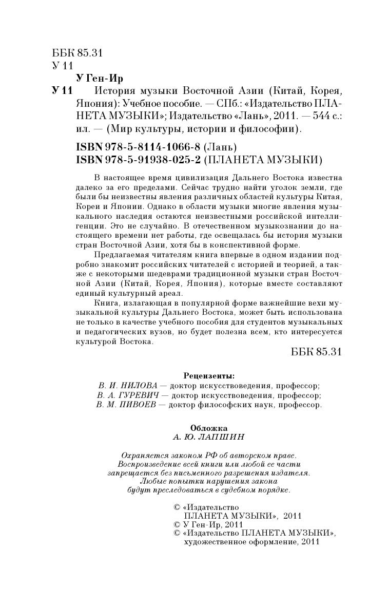 В настоящее время цивилизация Дальнего Востока известна далеко за его пределами. Сейчас трудно найти уголок земли, где были бы неизвестны явления различных областей культуры Китая, Кореи и Японии. Однако в области музыки многие явления музыкального наследия остаются неизвестными российской интеллигенции. Это не случайно. В отечественном музыкознании до настоящего времени нет работы, где освещалась бы история музыки стран Восточной Азии, хотя бы в конспективной форме. Предлагаемая читателям книга впервые в одном издании подробно знакомит российских читателей с историей и теорией, а также с некоторыми шедеврами традиционной музыки стран Восточной Азии (Китай, Корея, Япония), которые вместе составляют единый культурный ареал. Книга, излагающая в популярной форме важнейшие вехи музыкальной культуры Дальнего Востока, может быть использована не только в качестве учебного пособия для студентов музыкальных и педагогических вузов, но будет полезна всем, кто интересуется культурой Востока.