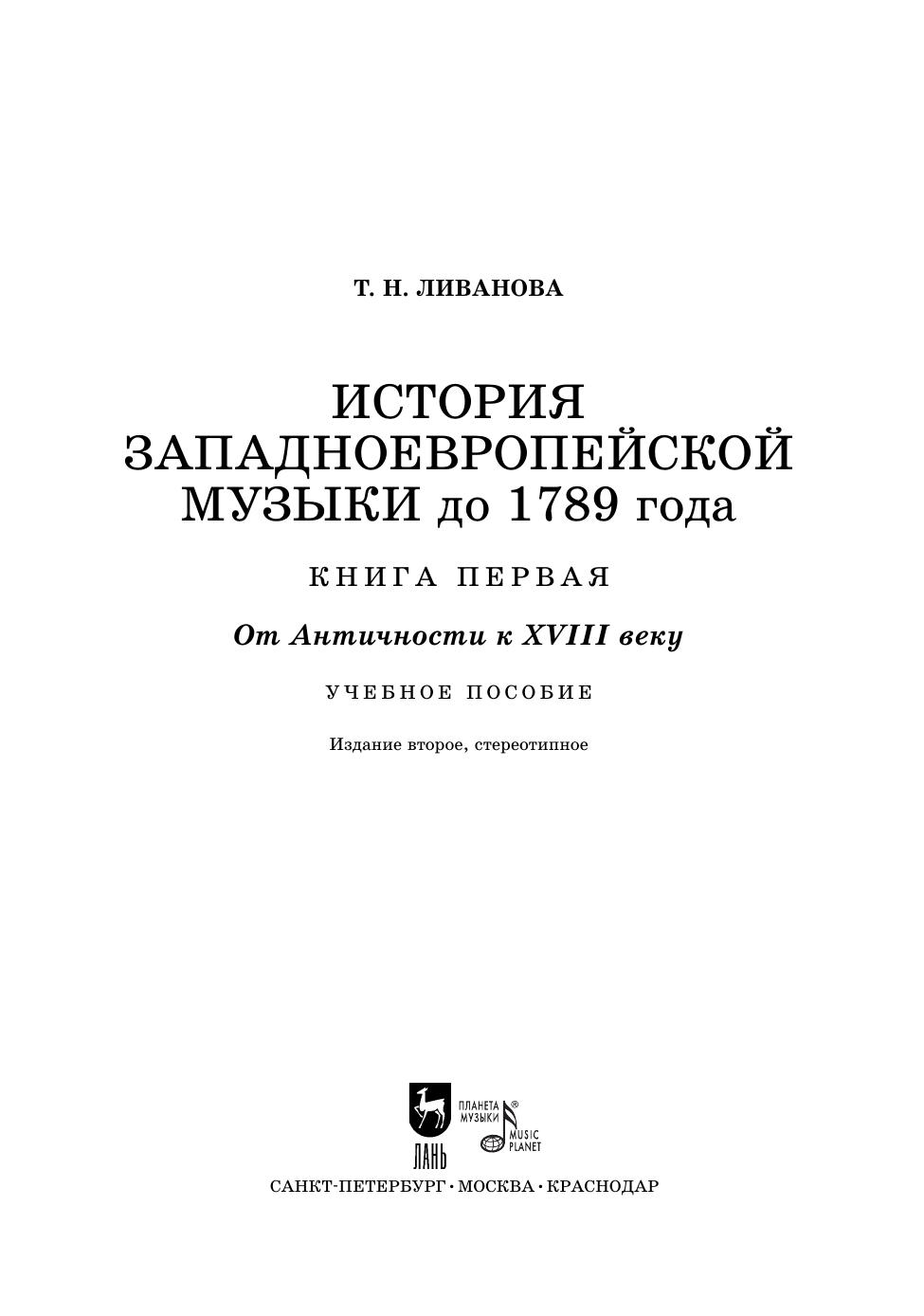 История западноевропейской музыки до 1789 года. Книга первая. От Античности к XVIII веку