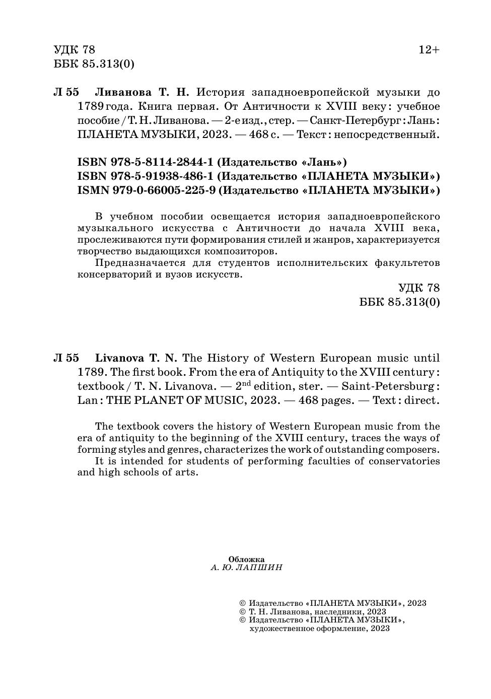 В учебном пособии освещается история западноевропейского музыкального искусства с эпохи античности по начало XVIII века, прослеживаются пути формирования стилей и жанров, характеризуется творчество выдающихся композиторов. Предназначается для студентов исполнительских факультетов консерваторий и вузов искусств. The textbook covers the history of Western European music from the era of antiquity to the beginning of the XVIII century, traces the ways of forming styles and genres, characterizes the work of outstanding composers. It is intended for students of performing faculties of conservatories and high schools of arts.