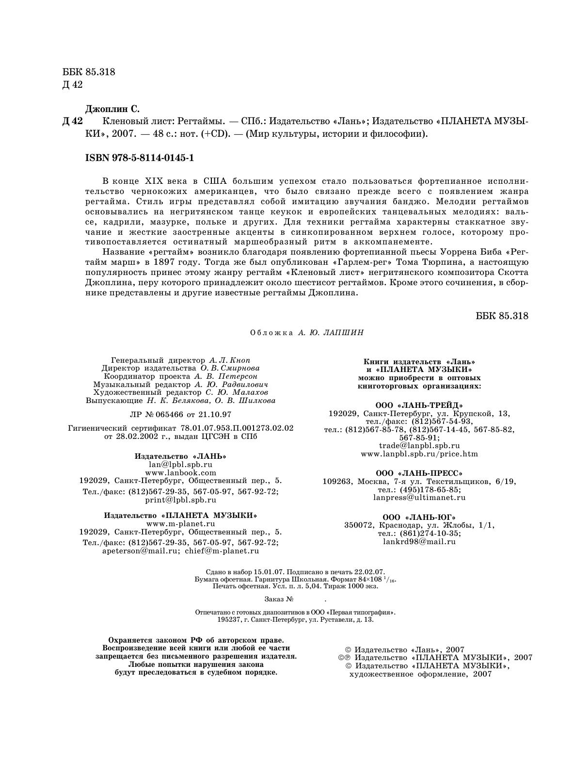 В конце XIX века в США большим успехом стало пользоваться фортепианное исполнительство чернокожих американцев, что было связано прежде всего с появлением жанра регтайма. Стиль игры представлял собой имитацию звучания банджо. Мелодии регтаймов основывались на негритянском танце кеукок и европейских танцевальных мелодиях: вальсе, кадрили, мазурке, польке и других. Для техники регтайма характерны стаккатное звучание и жесткие заостренные акценты в синкопированном верхнем голосе, которому противопоставляется остинатный маршеобразный ритм в аккомпанементе. Название «регтайм» возникло благодаря появлению фортепианной пьесы Уоррена Биба «Регтайм марш» в 1897 году. Тогда же был опубликован «Гарлем-рег» Тома Тюрпина, а настоящую популярность принес этому жанру регтайм «Кленовый лист» негритянского композитора Скотта Джоплина, перу которого принадлежит около шестисот регтаймов. Кроме этого сочинения, в сборнике представлены и другие известные регтаймы Джоплина.