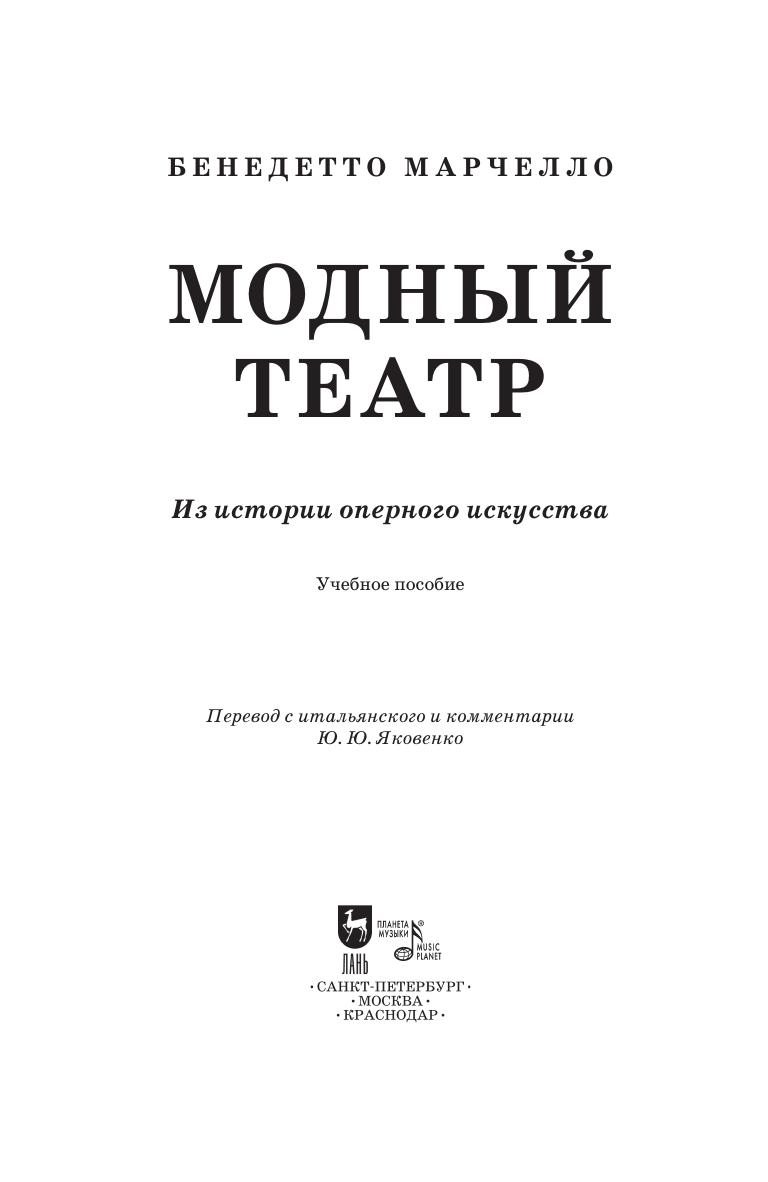 "Трактат Бенедетто Марчело «Модный театр» является уникальным памятником музыкальной культуры XVIII в. Именитый венецианский патриций, завоевавший славу не только как как композитор, но и как видный политический деятель, в этом опусе подробно описывает процесс создания оперного спектакля. Перед читателем разворачивается яркая картина закулисной жизни барочного музыкального театра. Интриги импресарио, невежественность композиторов, снобизм певцов выносятся автором на суд публики. Однако, сатирическими выпадами Марчелло не ограничивается. «Модный театр» имеет особую ценность как важный источник информации по истории становления музыкального искусства, в котором можно почерпнуть бесценные сведения, касающиеся специфики барочной оперы. Трактат был и остается одним из самых популярных и репрезентативных публицистических сочинений XVIII в., он впервые выходит в печати на русском языке в полном объеме.