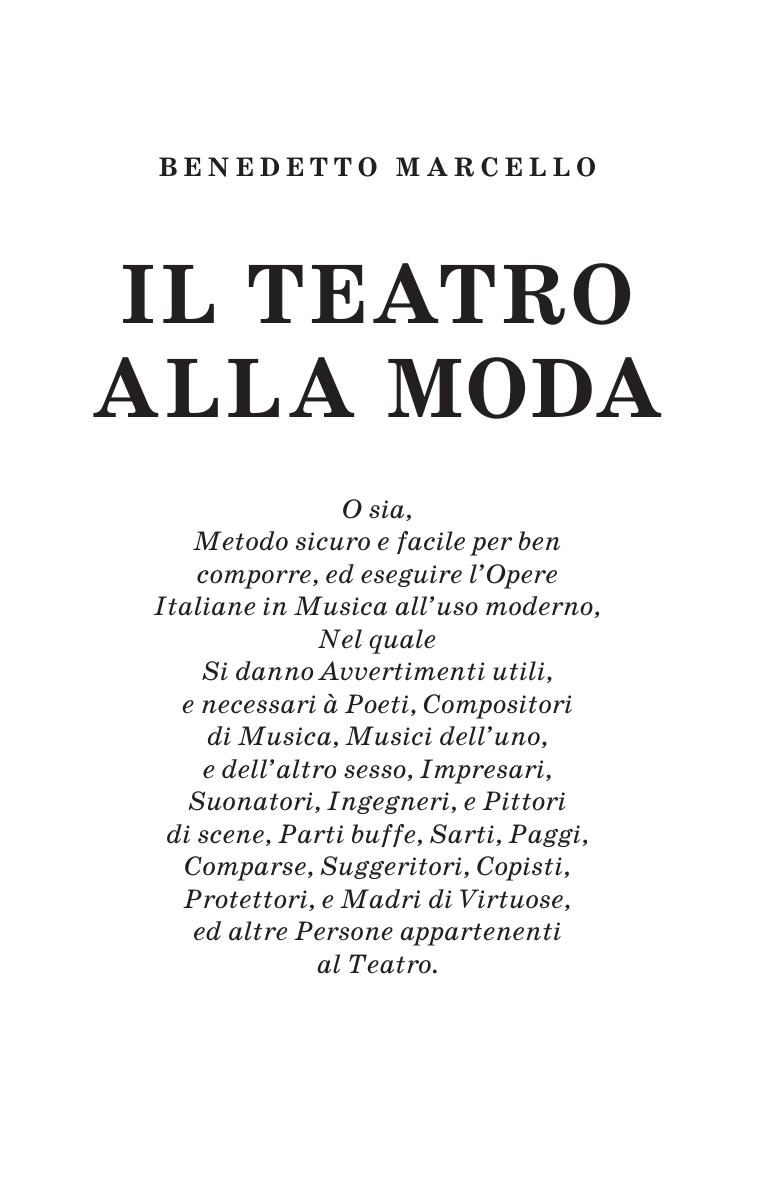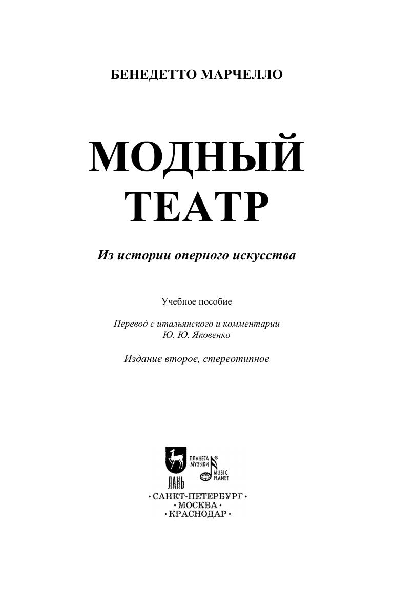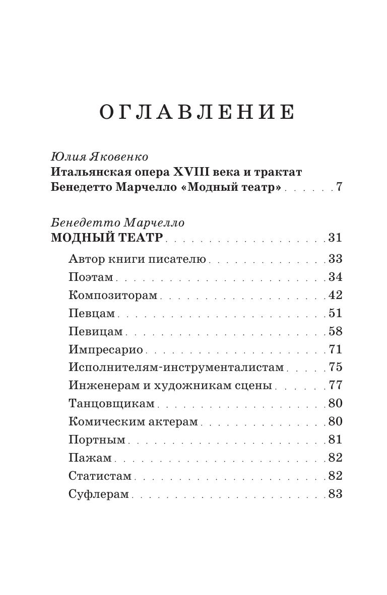 Трактат Бенедетто Марчело «Модный театр» является уникальным памятником музыкальной культуры XVIII в. Именитый венецианский патриций, завоевавший славу не только как как композитор, но и как видный политический деятель, в этом опусе подробно описывает процесс создания оперного спектакля. Перед читателем разворачивается яркая картина закулисной жизни барочного музыкального театра. Интриги импресарио, невежественность композиторов, снобизм певцов выносятся автором на суд публики. Однако, сатирическими выпадами Марчелло не ограничивается. «Модный театр» имеет особую ценность как важный источник информации по истории становления музыкального искусства, в котором можно почерпнуть бесценные сведения, касающиеся специфики барочной оперы. Трактат был и остается одним из самых популярных и репрезентативных публицистических сочинений XVIII в., он впервые выходит в печати на русском языке в полном объеме. Книга предназначена для музыкантов-профессионалов, педагогов, студентов высших и средних специальных учебных заведений, а также широкого круга читателей, интересующихся историей оперного искусства.