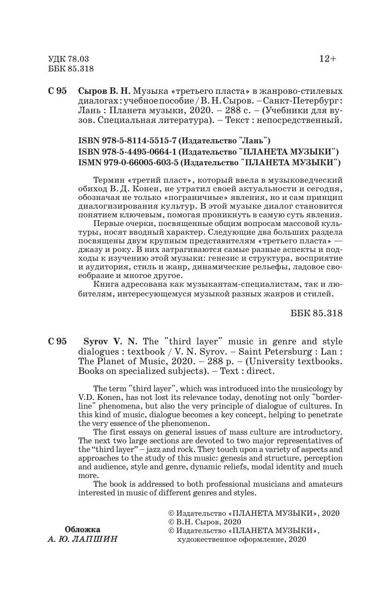 Книга адресована как музыкантам-специалистам, так и любителям, интересующемуся музыкой разных жанров и стилей.