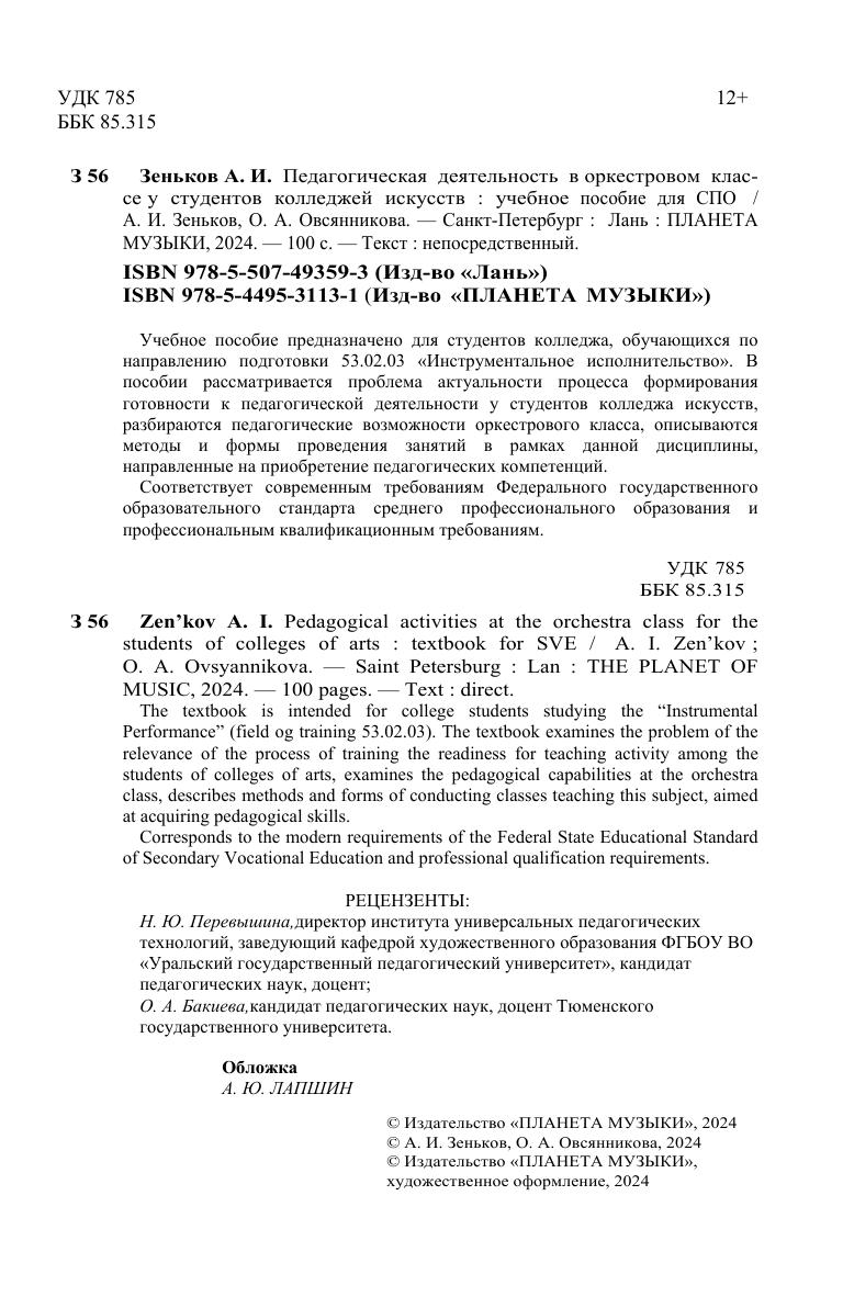 Авторы: Зеньков А. И., Овсянникова О. А.