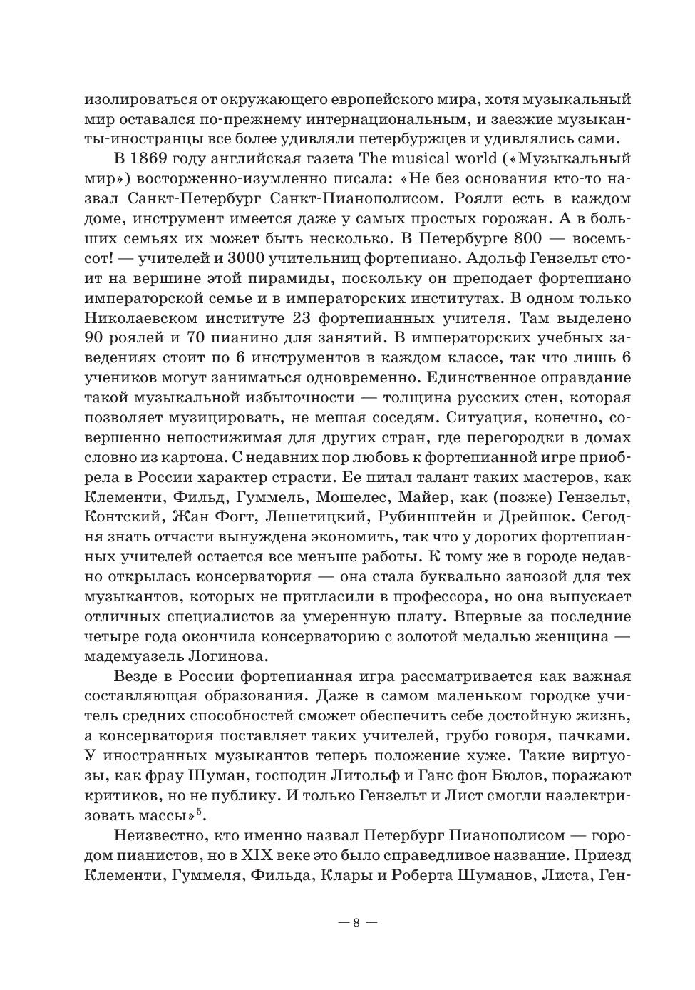 Книга доктора искусствоведения, профессора Санкт-Петербургской консерватории Ольги Скорбященской посвящена теме взаимодействия русской и западноевропейской фортепианной музыки XIX века. Диалог разных культур в эту эпоху приобрел наибольшую интенсивность. Герои книги - пианисты и педагоги, условно говоря, " второго ряда" - Фильд, Гензельт, Герке, русские женщины-музыканты Вера Тиманова и Мария Янова, Феликс Блуменфельд. Но в их творчестве воплотились те неслышимые, но необычайно важные "европейские обертоны русской музыки", без которых невозможно представить музыкальную жизнь России сегодня. The book by Olga Skorbyashchenskaya, the Doctor of Art History, Professor of the St. Petersburg Conservatory is devoted to the theme of interaction between Russian and Western European piano music of the 19th century. The dialogue of different cultures in this era reached the highest intensity. The heroes of the book are pianists and teachers, so to speak, of the “second rank” — Field, Henselt, Gehrke, Russian women musicians Vera Timanova and Maria Yanova, Felix Blumenfeld. However, their work embodied those inaudible, but highly important “European overtones of Russian music”, without which it is impossible to imagine the music life of Russia today.