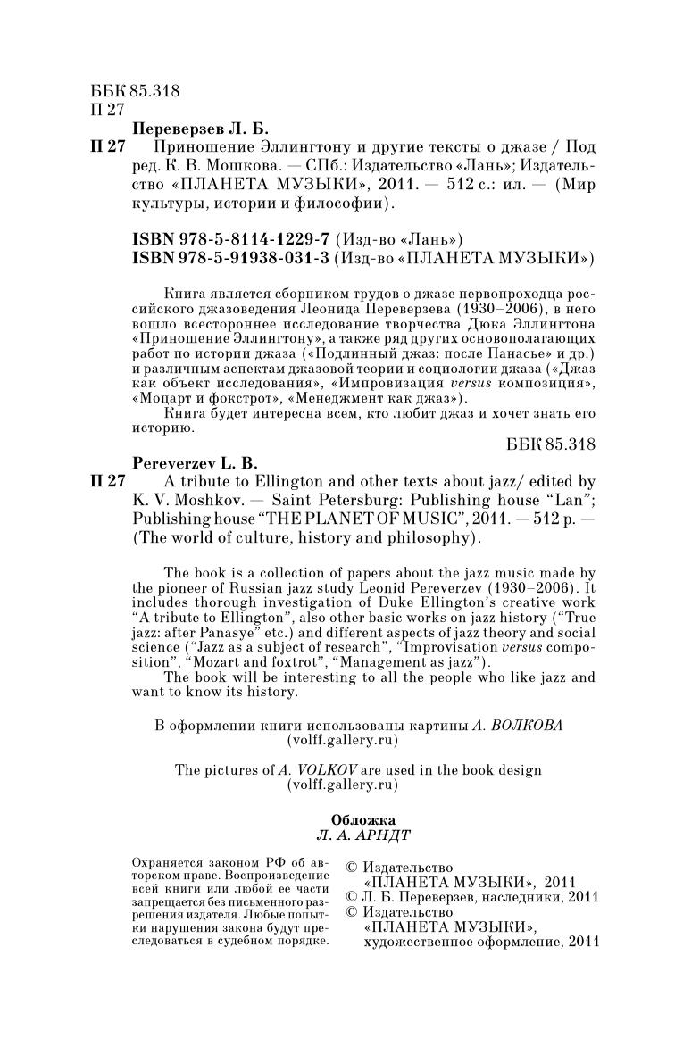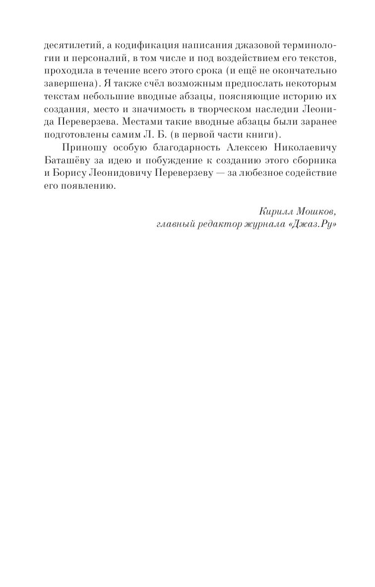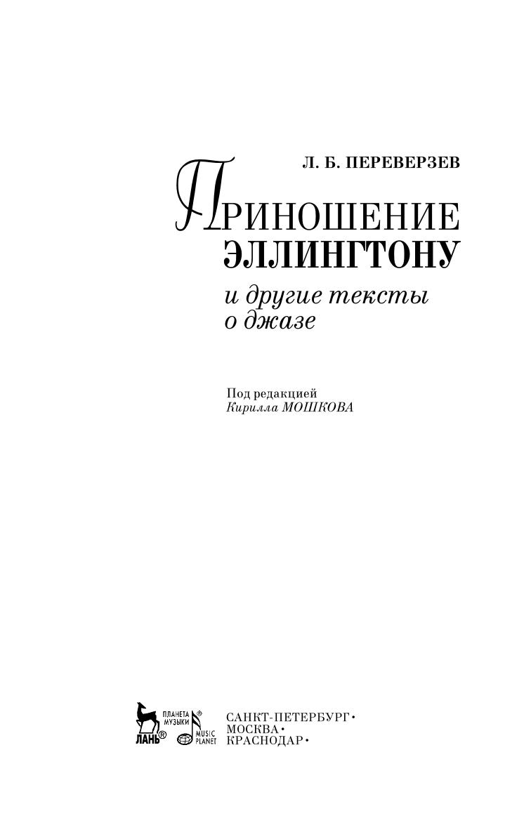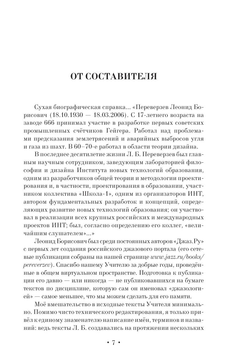 Книга является сборником трудов о джазе первопроходца российского джазоведения Леонида Переверзева (1930–2006), в него вошло всестороннее исследование творчества Дюка Эллингтона «Приношение Эллингтону», а также ряд других основополагающих работ по истории джаза («Подлинный джаз: после Панасье» и др.) и различным аспектам джазовой теории и социологии джаза («Джаз как объект исследования», «Импровизация versus композиция», «Моцарт и фокстрот», «Менеджмент как джаз»).