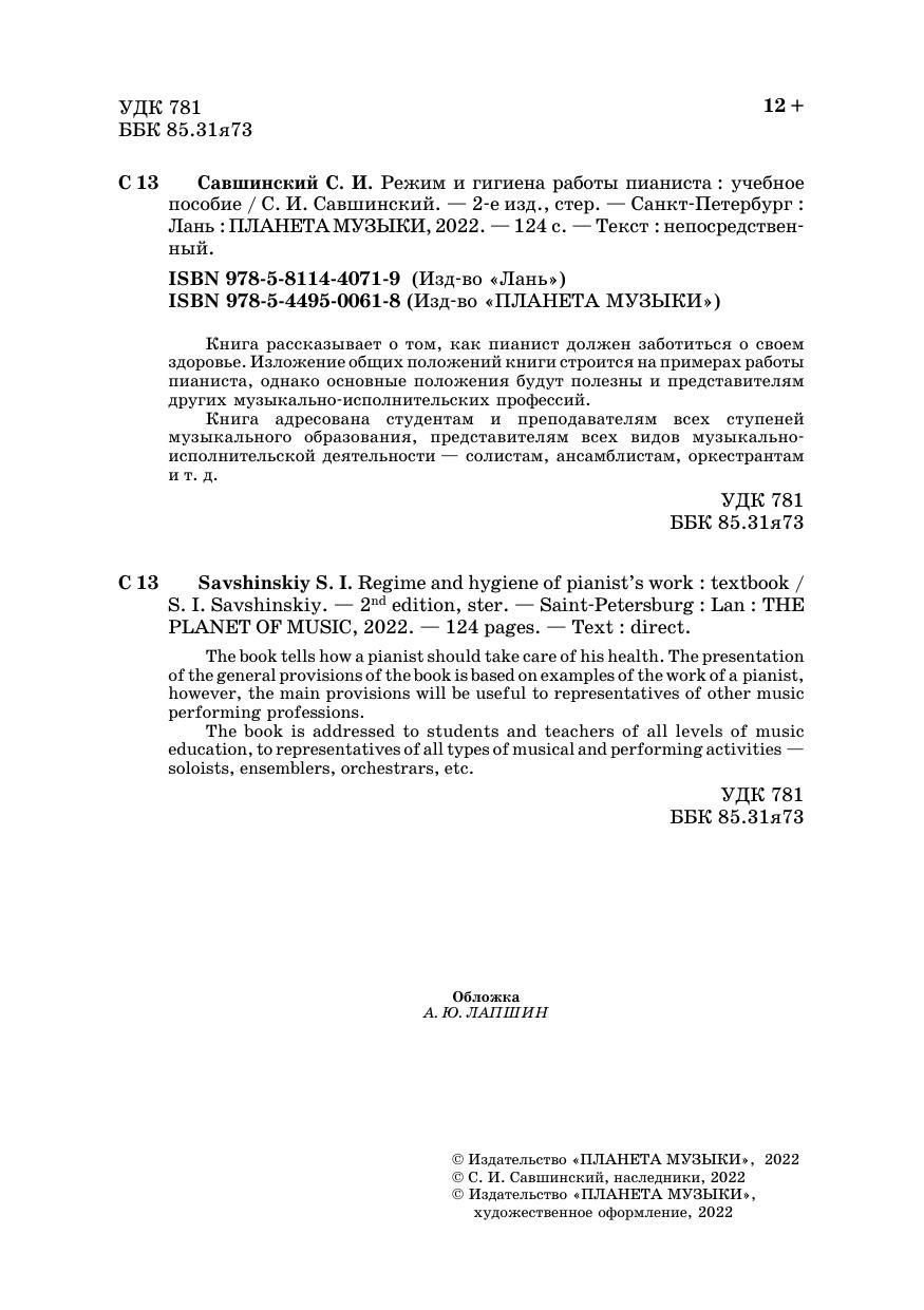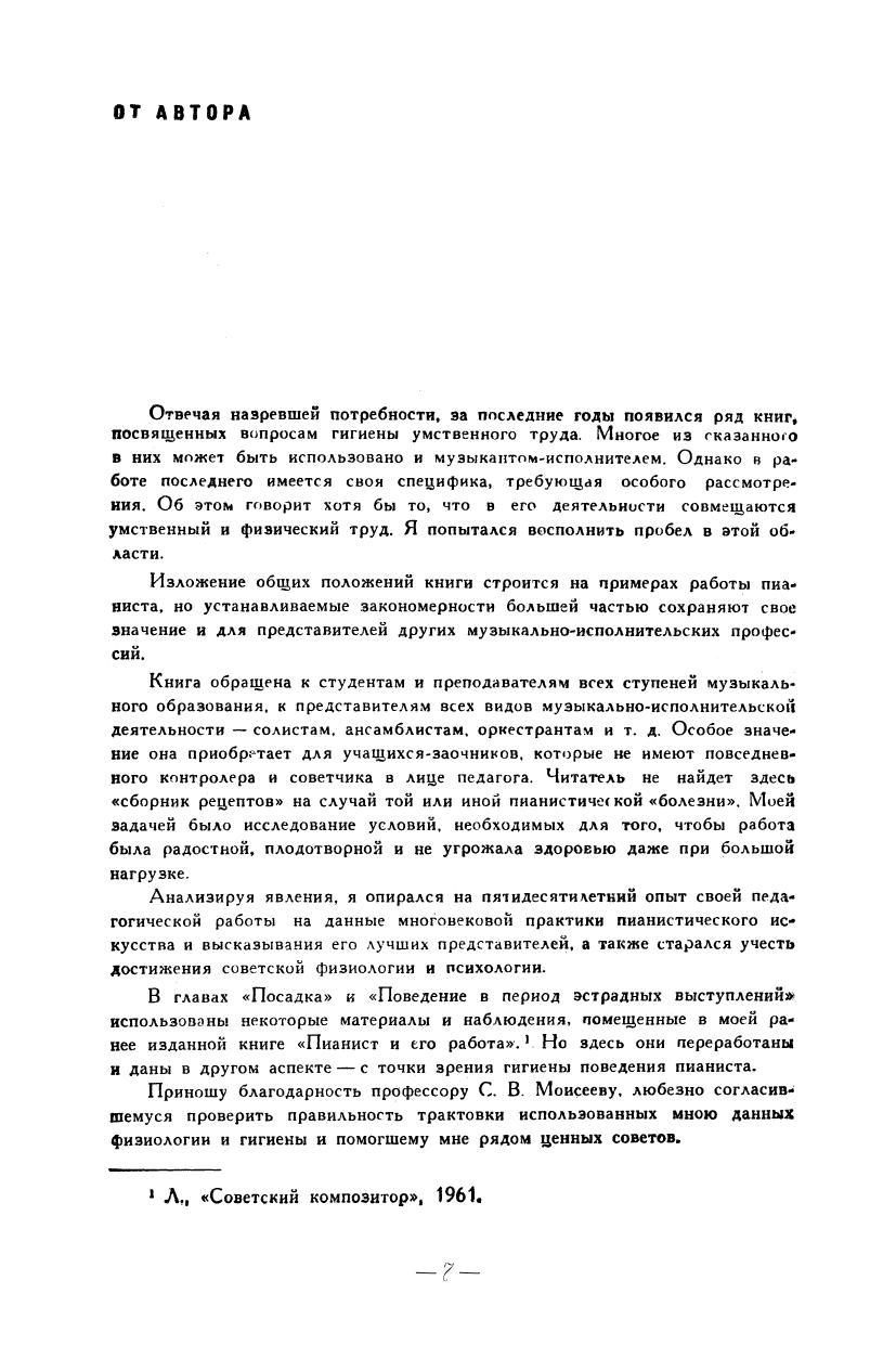 Книга рассказывает о том, как пианист должен заботиться о своем здоровье. Изложение общих положений книги строится на примерах работы пианиста, однако основные положения будут полезны и представителям других музыкально-исполнительских профессий.