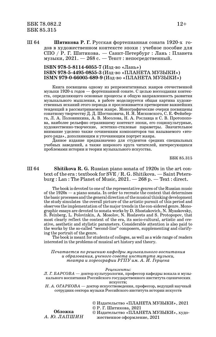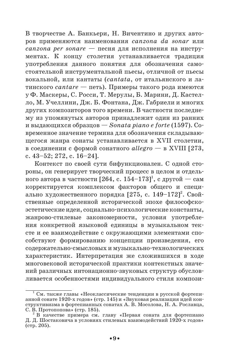Книга посвящена одному из репрезентативных жанров отечественной музыки 1920-х годов - фортепианной сонате. С целью воссоздания контекста, определяющего основные процессы и общую направленность развития музыкального мышления, в работе моделируется общая картина художественных исканий этого периода и прослеживается претворение важнейших тенденций в рассматриваемом жанре. Монографические очерки посвящены сонатному творчеству Д. Д. Шостаковича, Н. Я. Мясковского, С. Е. Фейнберга, Л. А. Половинкина, А. В. Мосолова, Н. А. Рославца и С. В. Протопопова, наиболее рельефно отразившему контекст эпохи, его социокультурные, художественно-творческие, эстетико-стилевые параметры. Значительное внимание уделено также сочинениям композиторов так называемого «второго ряда», дополняющим и уточняющим портрет жанра. Данное издание предназначено для студентов средних специальных учебных заведений, а также широкого круга читателей, интересующихся проблемами истории и теории музыкального искусства.