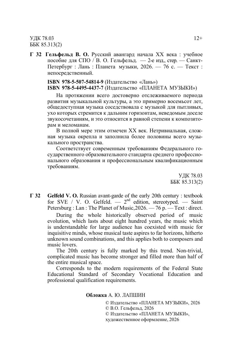 На протяжении всего достоверно отслеживаемого периода развития музыкальной культуры, а это примерно восемьсот лет, общедоступная музыка соседствовала с музыкой для пытливых, ухо которых стремится к дальним горизонтам, неведомым доселе звукосочетаниям, и это относится в равной степени к композиторам и меломанам. В полной мере этим отмечен XX век. Нетривиальная, сложная музыка окрепла и заполнила более половины всего музыкального пространства. Соответствует современным требованиям Федерального государственного образовательного стандарта среднего профессионального образования и профессиональным квалификационным требованиям. During the whole historically observed period of music evolution, which lasts about eight hundred years, the music which is understandable for large audience has coexisted with music for inquisitive minds, whose musical taste aspires to far horizons, hitherto unknown sound combinations, and this applies both to composers and music lovers. The 20th century is fully marked by this trend. Non-trivial, complicated music has become stronger and filled more than half of the entire musical space. Corresponds to the modern requirements of the Federal State Educational Standard of Secondary Vocational Education and professional qualification requirements.