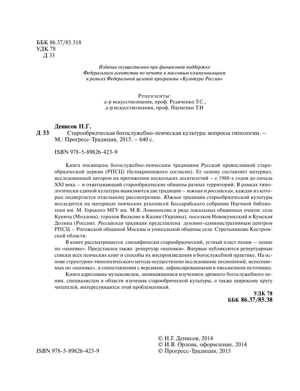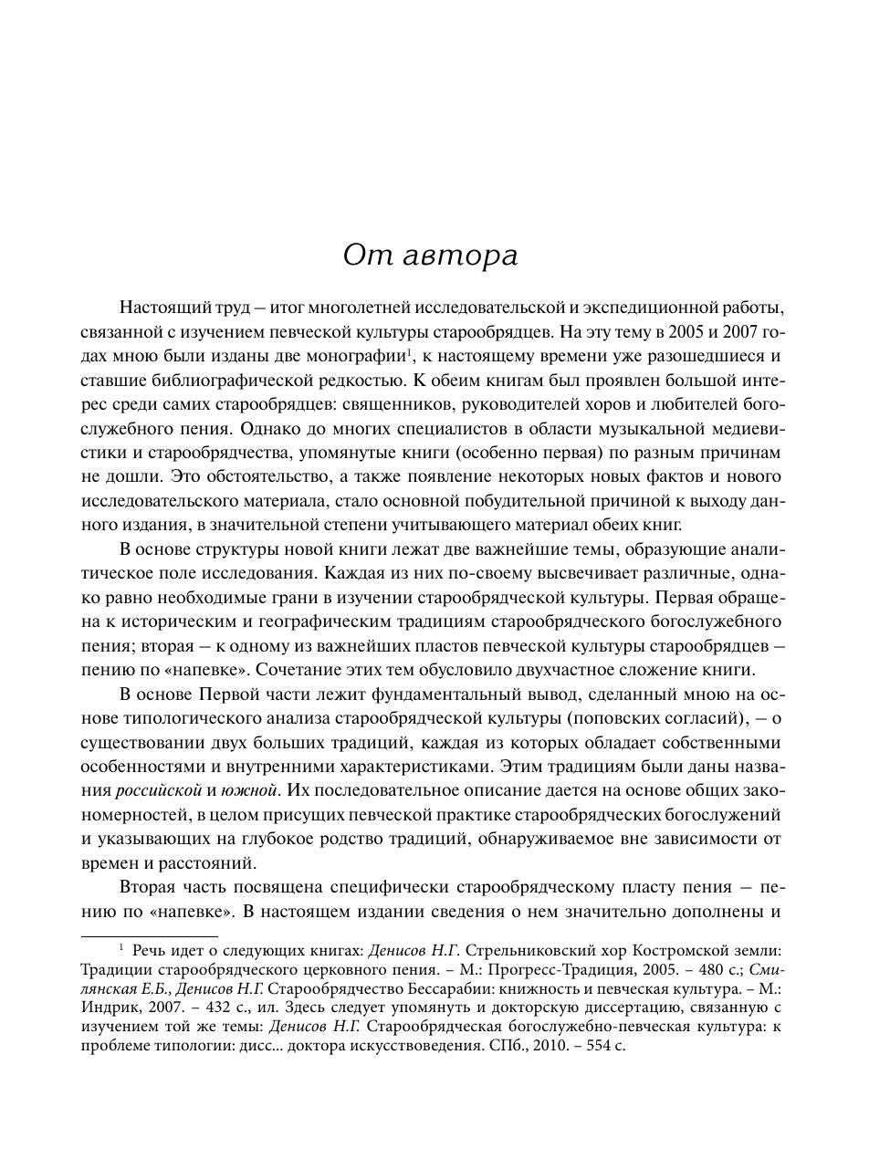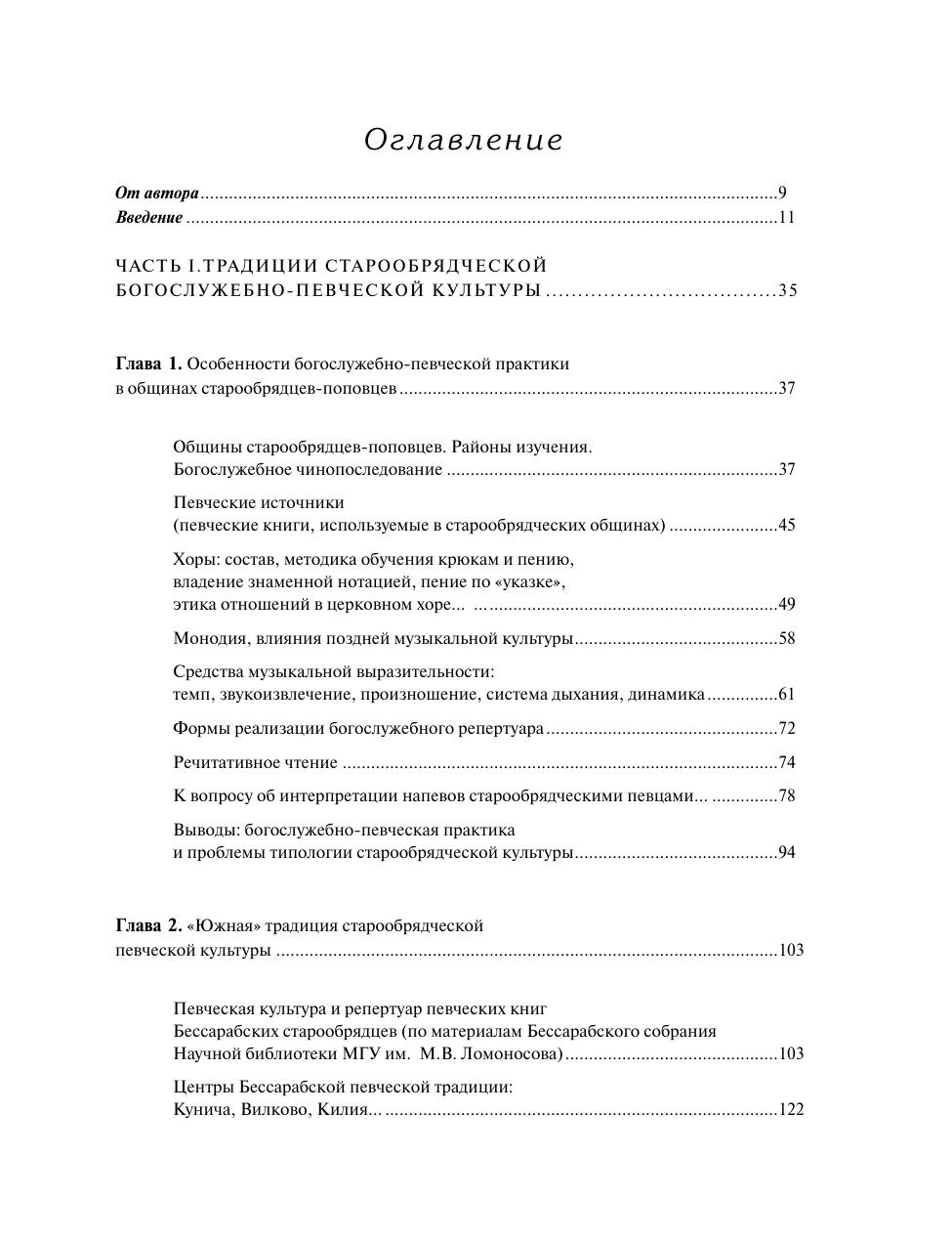Книга посвящена богослужебно-певческим традициям Русской православной старообрядческой церкви (РПСЦ) (белокриницкого согласия). Ее основу составляет материал, исследованный автором на протяжении нескольких десятилетий – с 1980-х годов до начала ХХI века – и охватывающий старообрядческие общины разных территорий. В рамках типологически единой культуры выявляются две традиции – южная и российская, каждая из которых подвергается отдельному рассмотрению. Южная традиция старообрядческой культуры исследуется на материале певческих рукописей Бессарабского собрания Научной библиотеки им. М. Горького МГУ им. М.В. Ломоносова и ряда локальных общинных очагов: села Кунича (Молдова), городов Вилково и Килия (Украина), поселков Новокумкский и Кумская Долина (Россия). Российская традиция представлена духовно-административным центром РПСЦ – Рогожской общиной Москвы и уникальной общины села Стрельниково Костромской области.