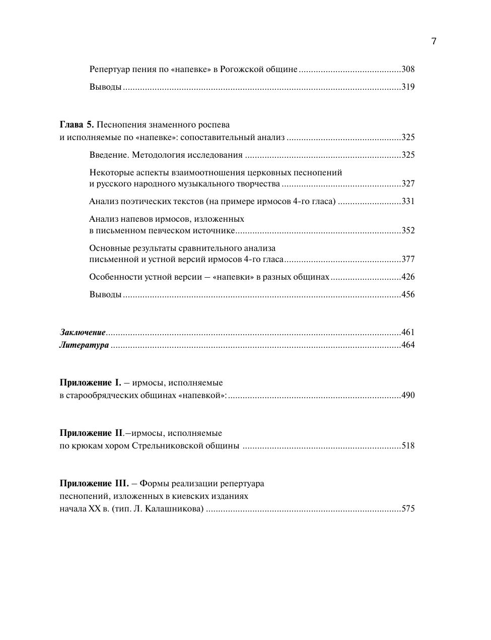 В книге рассматривается специфически старообрядческий, устный пласт пения — пение по "напевке". Представлен также репертуар "напевки". Впервые публикуются репертуарные списки всех певческих книг и способы их воспроизведения в богослужебной практике. На основе структурно-типологического метода осуществлено исследование песнопений, исполняемых по "напевке", в сопоставлении с версиями, зафиксированными в письменном источнике.