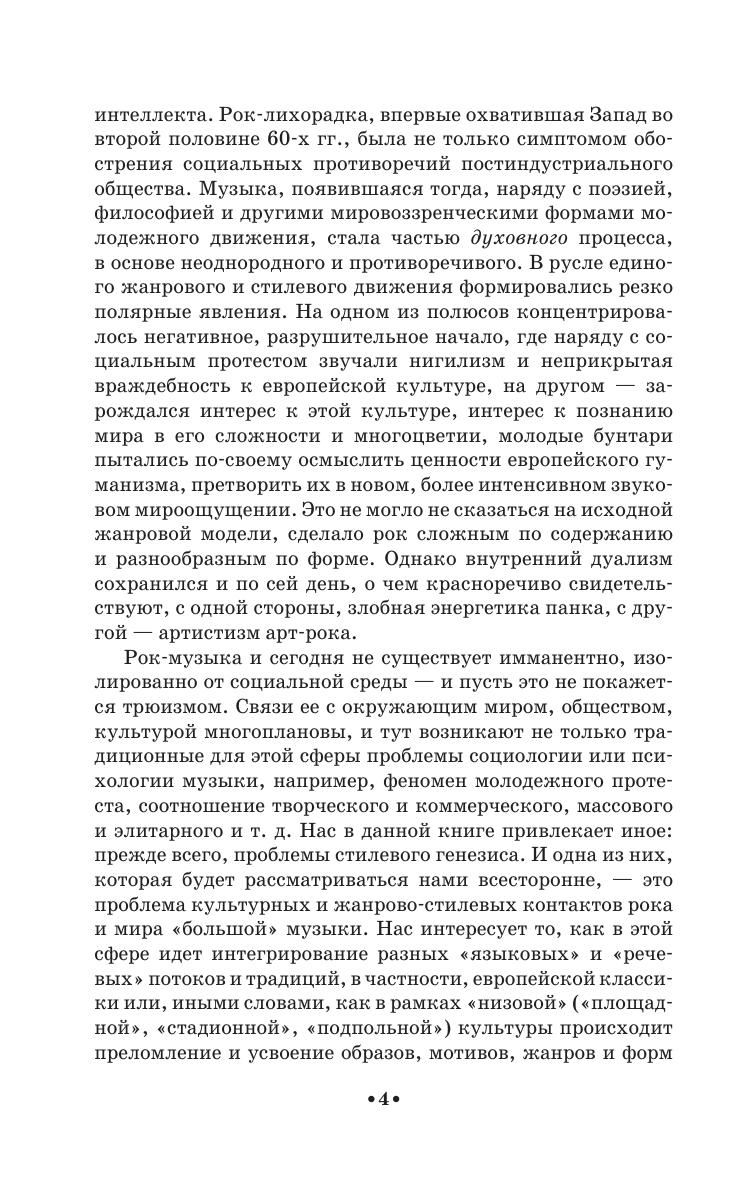 Рок-музыка представлена в широком культурном и жанрово-стилевом контексте, в частности, контексте европейской классики. Показаны стилевые направления, возникшие в результате жанрового и стилевого контакта (барокко-рок, арт-рок, прогрессив-рок, рок-авангард, нео-арт и др.), рассмотрены наиболее важные аспекты этого контакта: слушательская аудитория, психология восприятия, музыкальные жанры и формы, а также музыкальный язык, где выделяются громкостная динамика, лад и гармония. В книге дается типология стилевых контактов, которые возникают в ходе артизации рока. Пособие адресовано студентам и педагогам музыкальных ссузов и всем, кто интересуется современной музыкальной культурой.