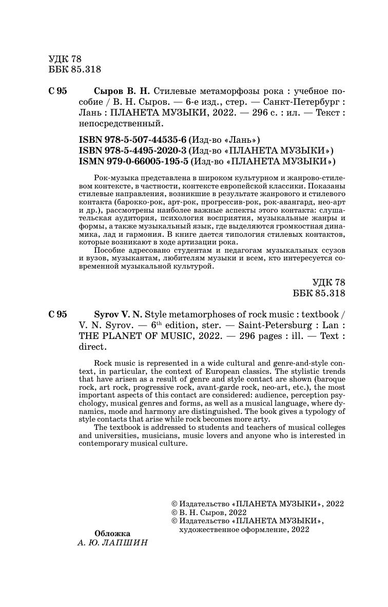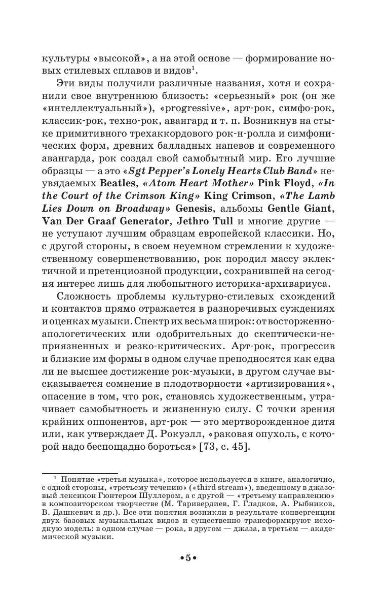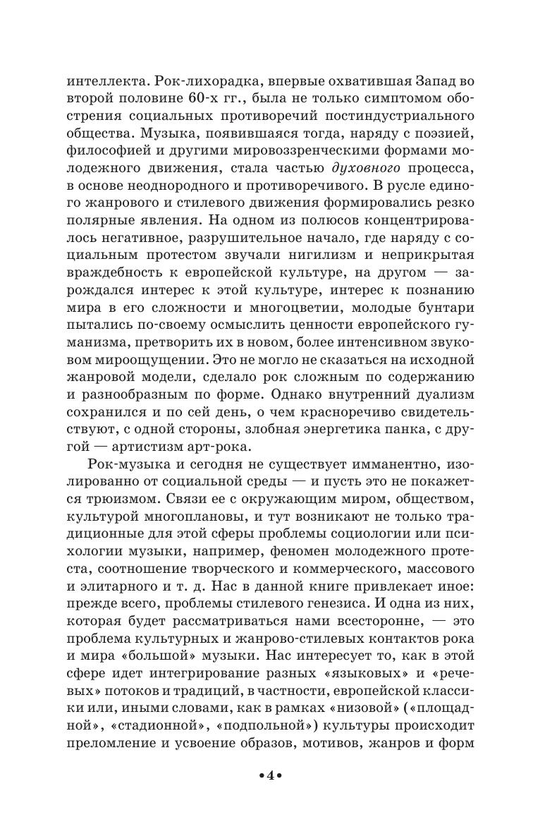 Rock music is represented in a wide cultural and genre-and-style context, in particular, the context of European classics. The stylistic trends that have arisen as a result of genre and style contact are shown (baroque rock, art rock, progressive rock, avant-garde rock, neo-art, etc.), the most important aspects of this contact are considered: audience, perception psychology, musical genres and forms, as well as a musical language, where dynamics, mode and harmony are distinguished. The book gives a typology of style contacts that arise while rock becomes more arty.