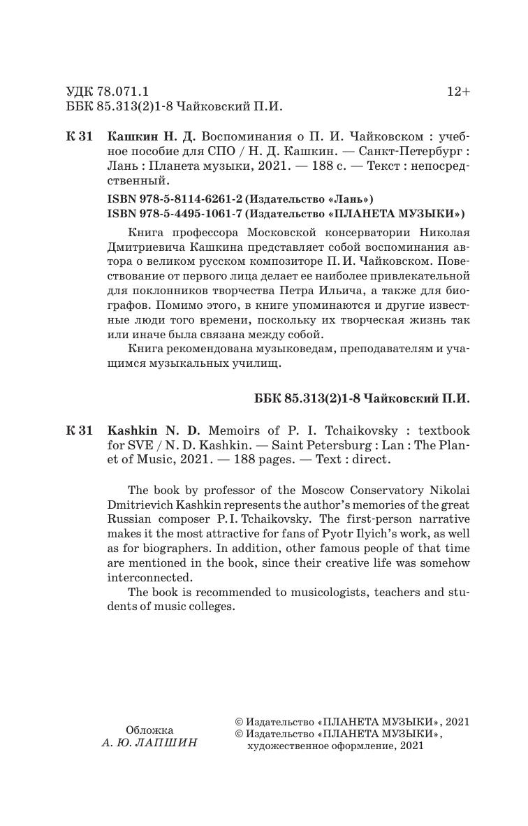 The book by professor of the Moscow Conservatory Nikolai Dmitrievich Kashkin represents the author’s memories of the great Russian composer P.I. Tchaikovsky. The first-person narrative makes it the most attractive for fans of Pyotr Ilyich’s work, as well as for biographers. In addition, other famous people of that time are mentioned in the book, since their creative life was somehow interconnected.