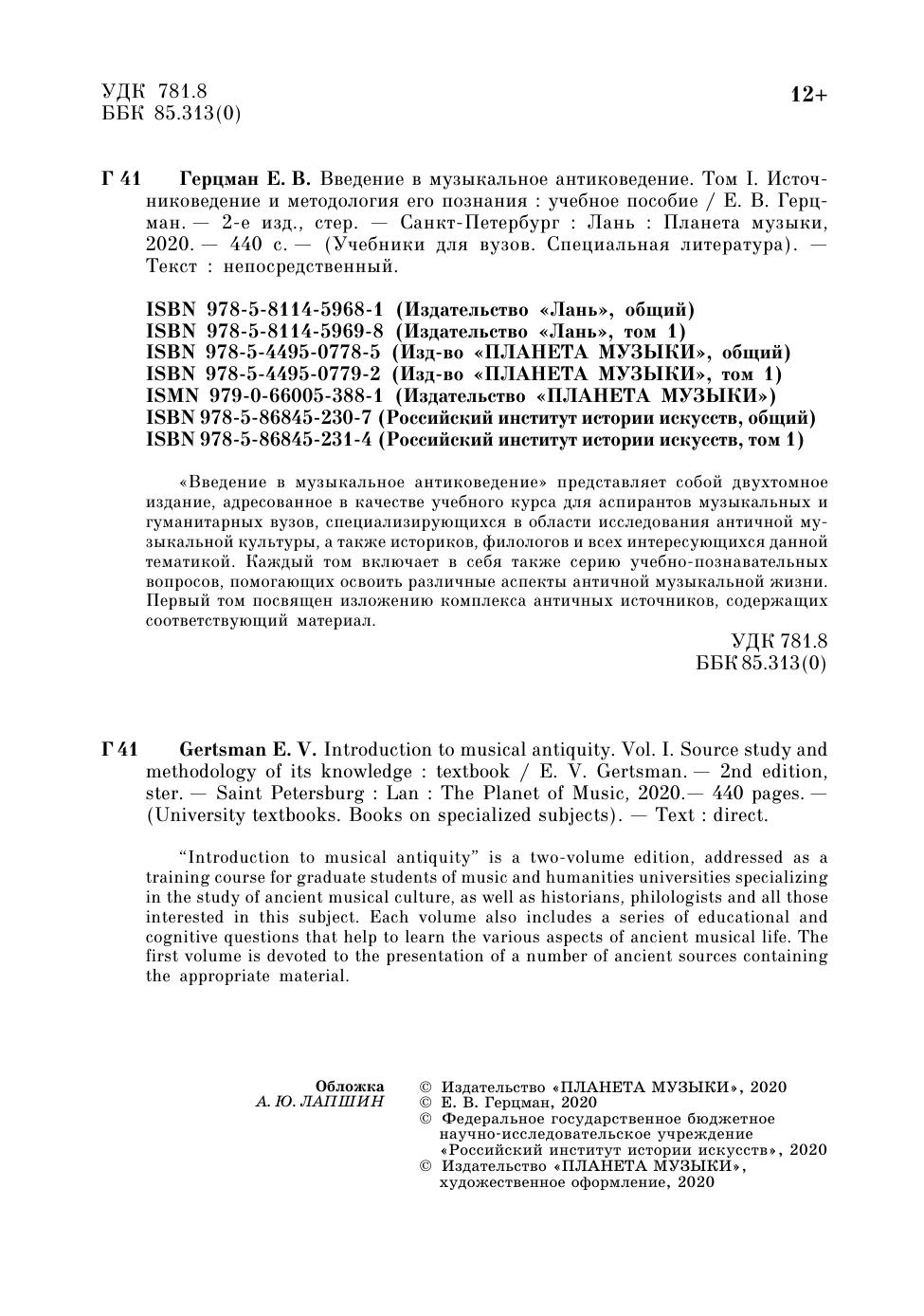 "Введение в музыкальное антиковедение" представляет собой двухтомное издание, адресованное в качестве учебного курса для аспирантов музыкальных и гуманитарных вузов, специализирующихся в области исследования античной музыкальной культуры, а также историков, филологов и всех интересующихся данной тематикой. Каждый том включает в себя также серию учебно-познавательных вопросов, помогающих освоить различные аспекты античной музыкальной жизни.