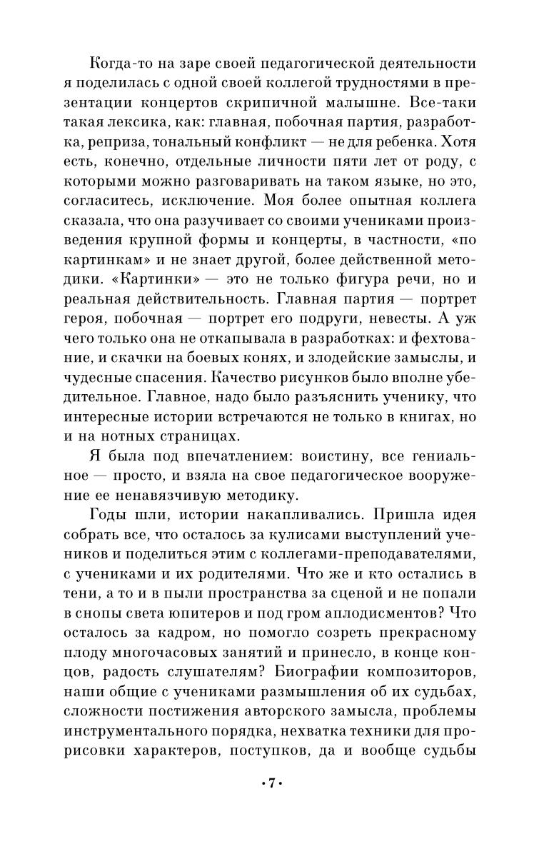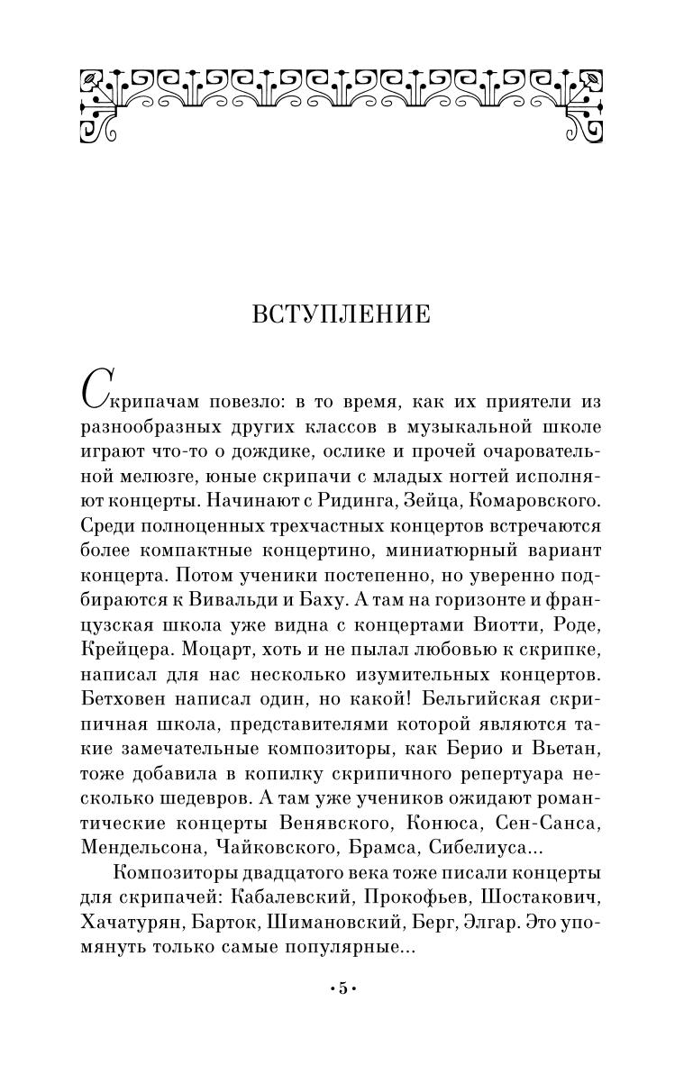 The book presents the cultural concept of working on large music works, in particular, violin concertos in special classes of music schools and music colleges. The book is written in a simple and intelligible language, contains a lot of interesting and useful historical, cultural and practical information, author’s personal thoughts and associations.