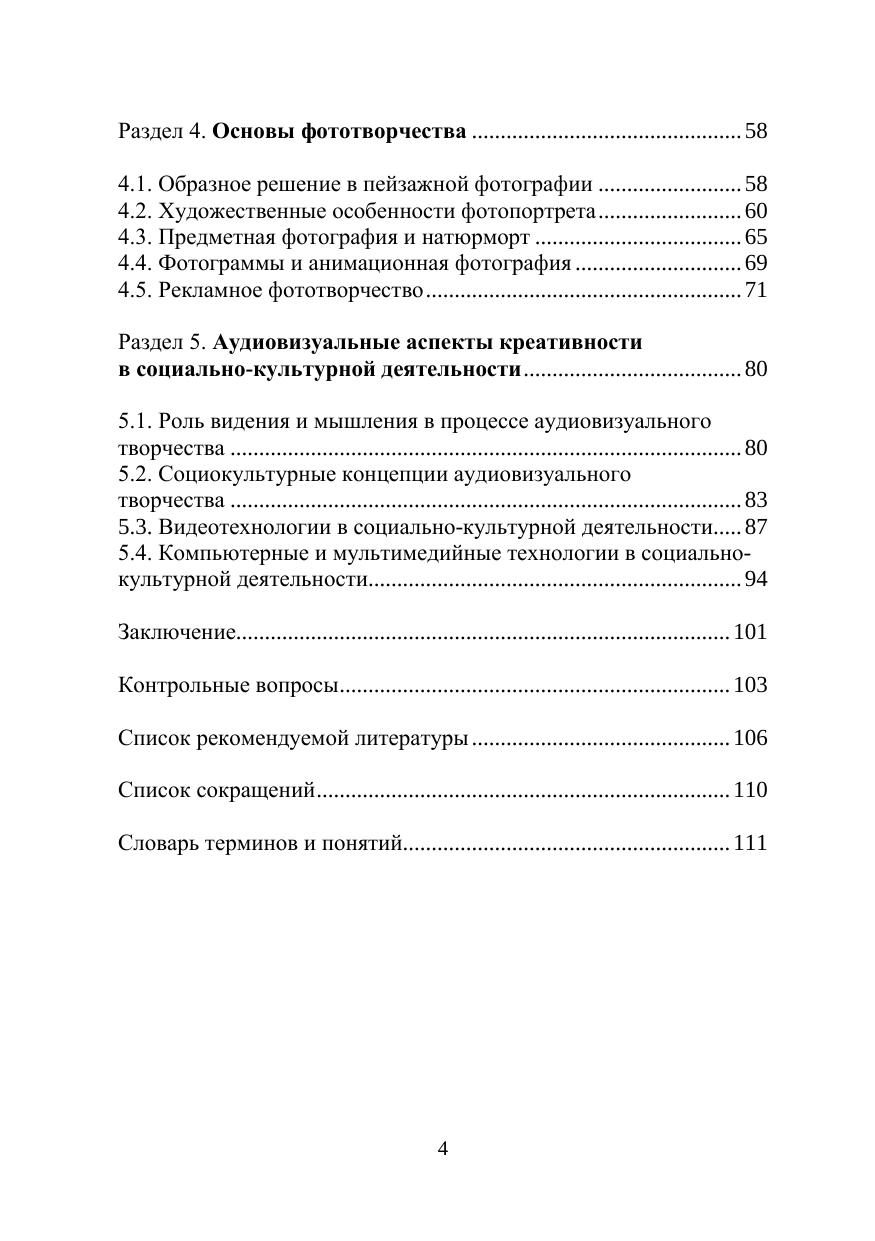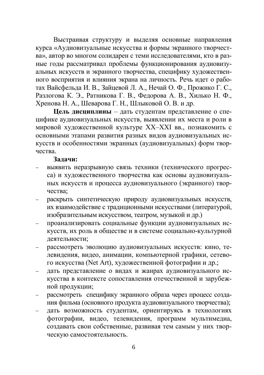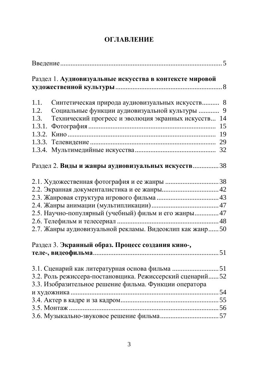 В учебном пособии анализируется специфика аудиовизуальных искусств, основанных на синтезе техники и творчества (кино, телевидение, видео, компьютерная графика, художественная фотография и др.), рассматриваются виды и жанры экранных искусств и их эволюция. В практической части пособия даются особенности разных форм аудиовизуального (экранного) творчества: основы мастерства в разных жанрах фотоискусства, процесс создания кино-, телеи видеофильма, мультимедийные формы творчества, фото-, телеи видеореклама, видеоклип и др. Адресовано магистрантам, обучающимся по направлениям «Аудиовизуальные коммуникации и медиатехнологии в социально-культурной деятельности» и «Социальная культурология», а также студентам-культурологам, искусствоведам и всем интересующимся аудиовизуальными искусствами и формами экранного творчества.