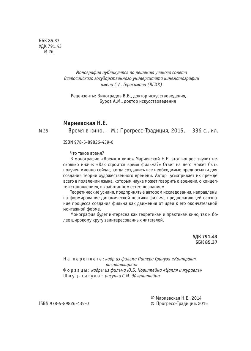 Монография будет интересна как теоретикам и практикам кино, так и более широкому кругу заинтересованных читателей.