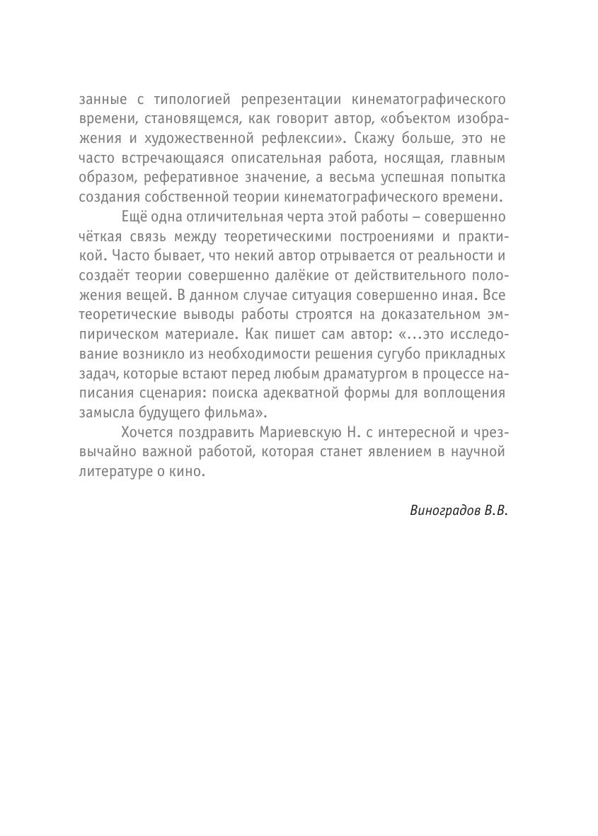 Что такое время? В монографии "Время в кино" Мариевской Н.Е. этот вопрос звучит несколько иначе: "Как строится время фильма?" Ответ на него может быть получен именно сейчас, когда создались все необходимые предпосылки для создания теории художественного времени. Автор усматривает их прежде всего в появлении языка, которым наука может говорить о времени, о концепте "становление", выработанном естествознанием.
