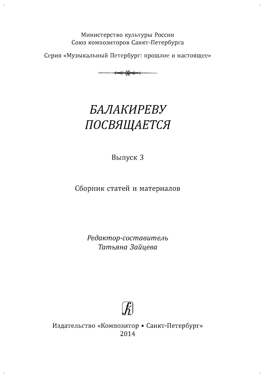 Балакиреву посвящается. Сборник статей и материалов. Вып. 3