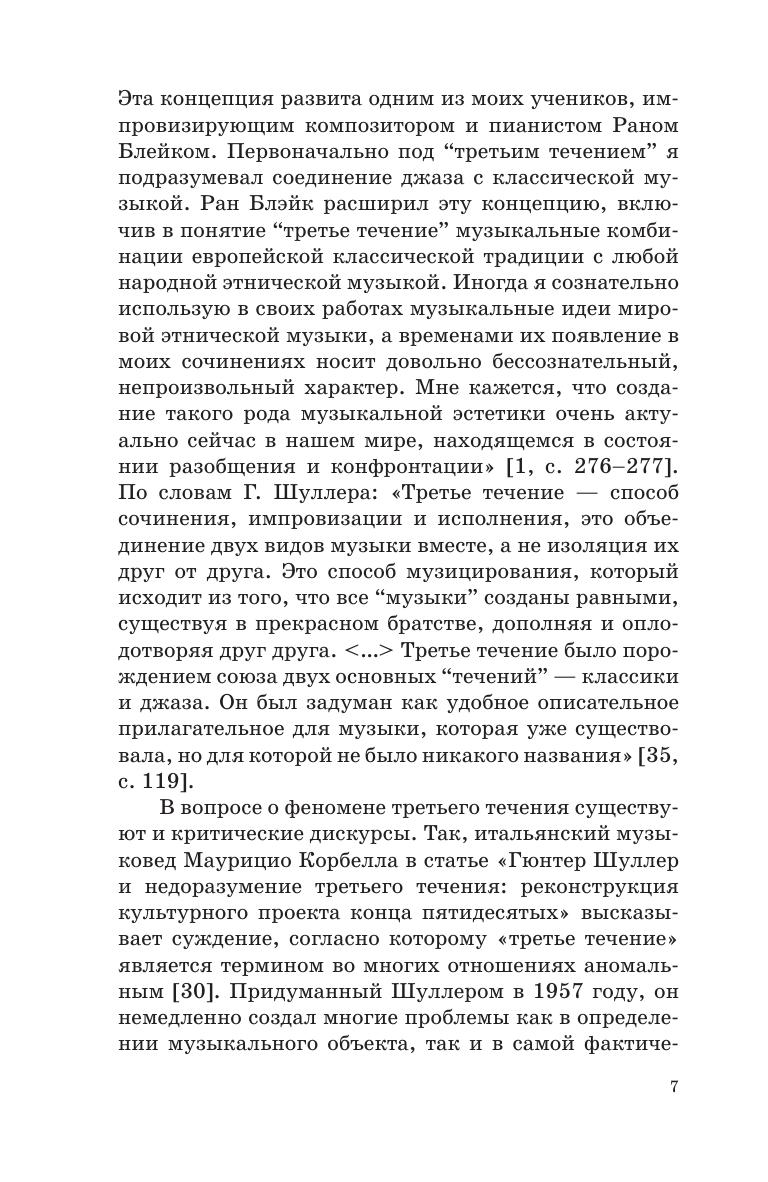 The textbook is dedicated to Gunther Schuller, an American composer, performer, musicologist, conductor, teacher, author of a term the “Third Stream”, which refers to a stylistic trend that synthesizes expressive means of academic music and jazz practice. The book analyzes the works of G. Schuller, previously unstudied in Russian musicology and based on the aesthetic principles of the Third Stream, created in 1957–1967. The edition is intended for musicologists, composers, academic and jazz performers, music teachers. The material can be used while studying “History of foreign music of the 20–21st centuries”, “Mass musical culture”, “History and theory of jazz music”, “Composition”.
