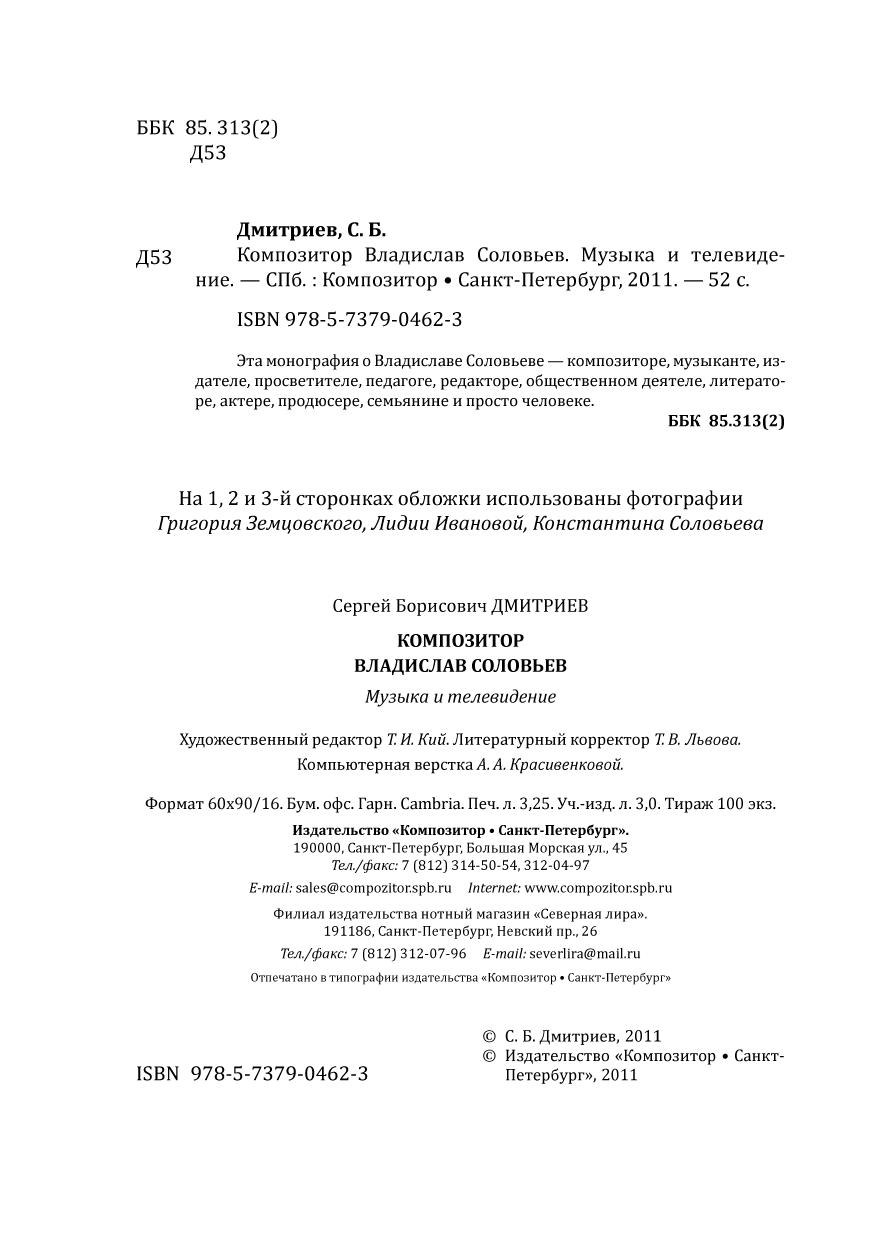 Эта монография о Владиславе Соловьеве — композиторе, музыканте, издателе, просветителе, педагоге, редакторе, общественном деятеле, литераторе, актере, продюсере, семьянине и просто человеке.