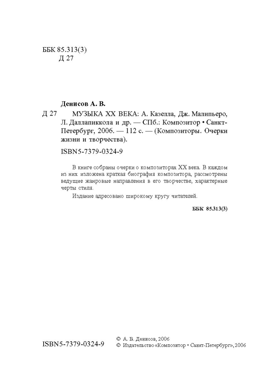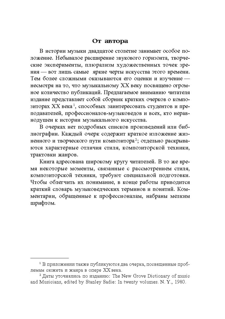 В книге собраны очерки о композиторах XX века. В каждом из них изложена краткая биография композитора, рассмотрены ведущие жанровые направления в его творчестве, характерные черты стиля. Издание адресовано широкому кругу читателей.