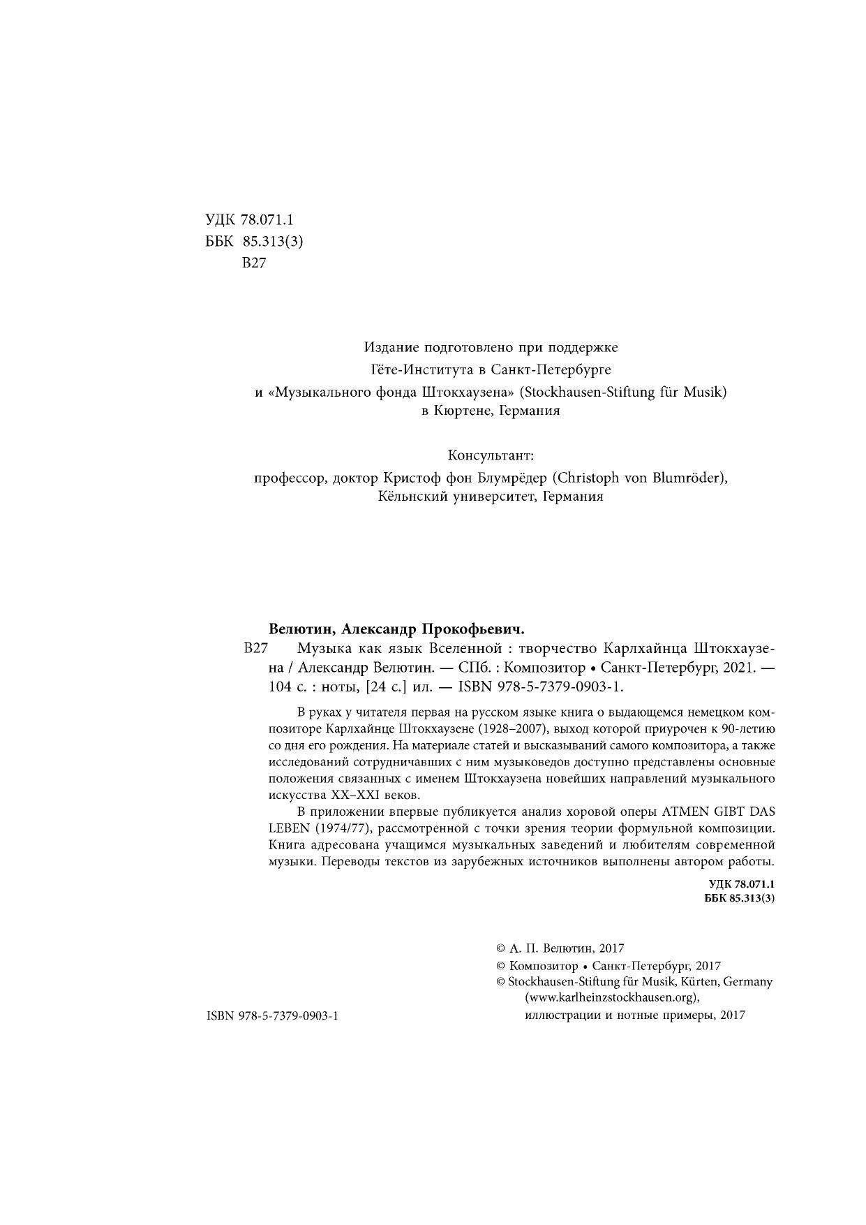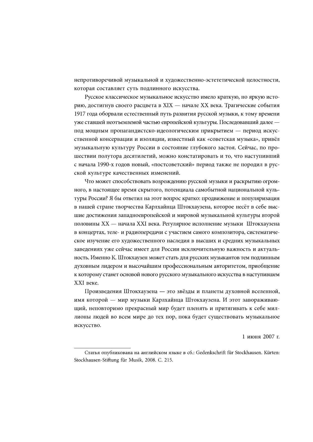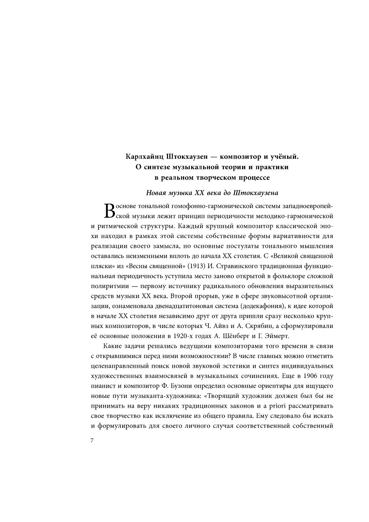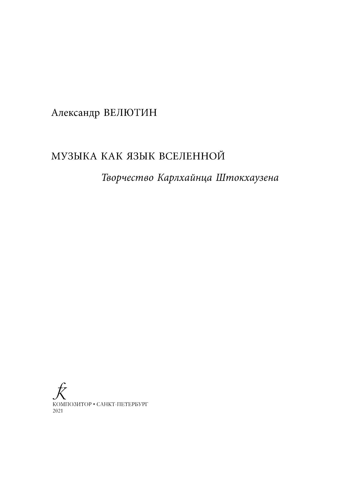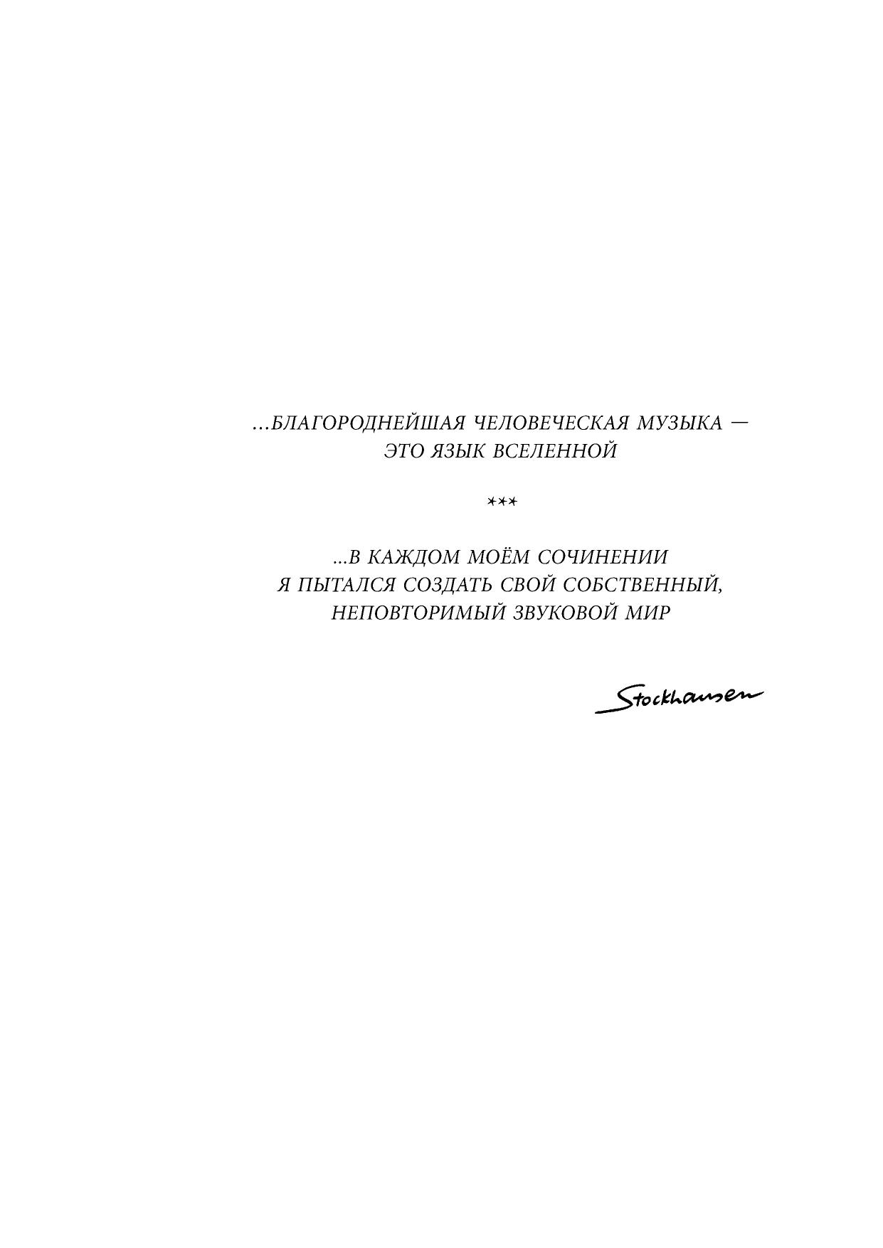 В руках у читателя первая на русском языке книга о выдающемся немецком композиторе Карлхайнце Штокхаузене (1928–2007), выход которой приурочен к 90-летию со дня его рождения. На материале статей и высказываний самого композитора, а также исследований сотрудничавших с ним музыковедов, доступно представлены основные положения связанных с именем Штокхаузена новейших направлений музыкального искусства XX–XXI веков.