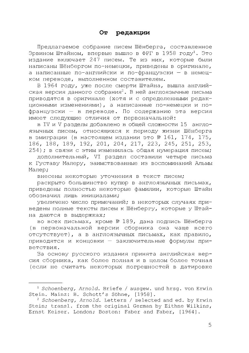 Сборник писем одного из крупнейших композиторов XX в., составленный его учеником Э. Штайном, отражает взгляды Шёнберга, дает представление о его творческих принципах. Письма несут на себе отпечаток яркой личности автора, позволяют познакомиться с обстоятельствами его жизненного пути. Издание иллюстрировано фотографиями Шёнберга и репродукциями его живописных работ.