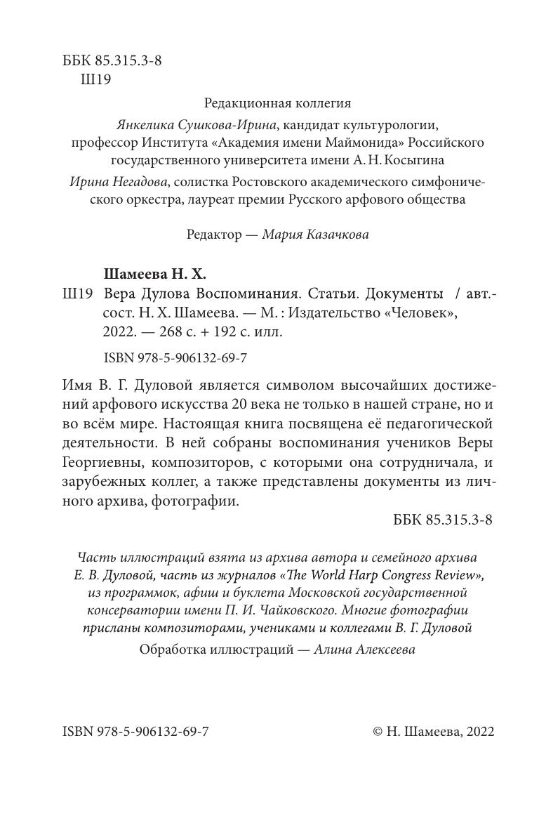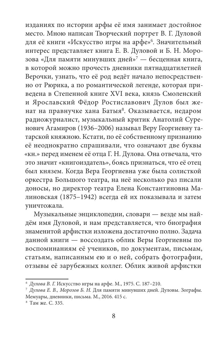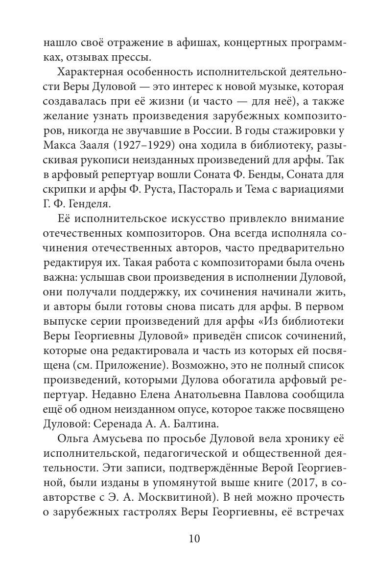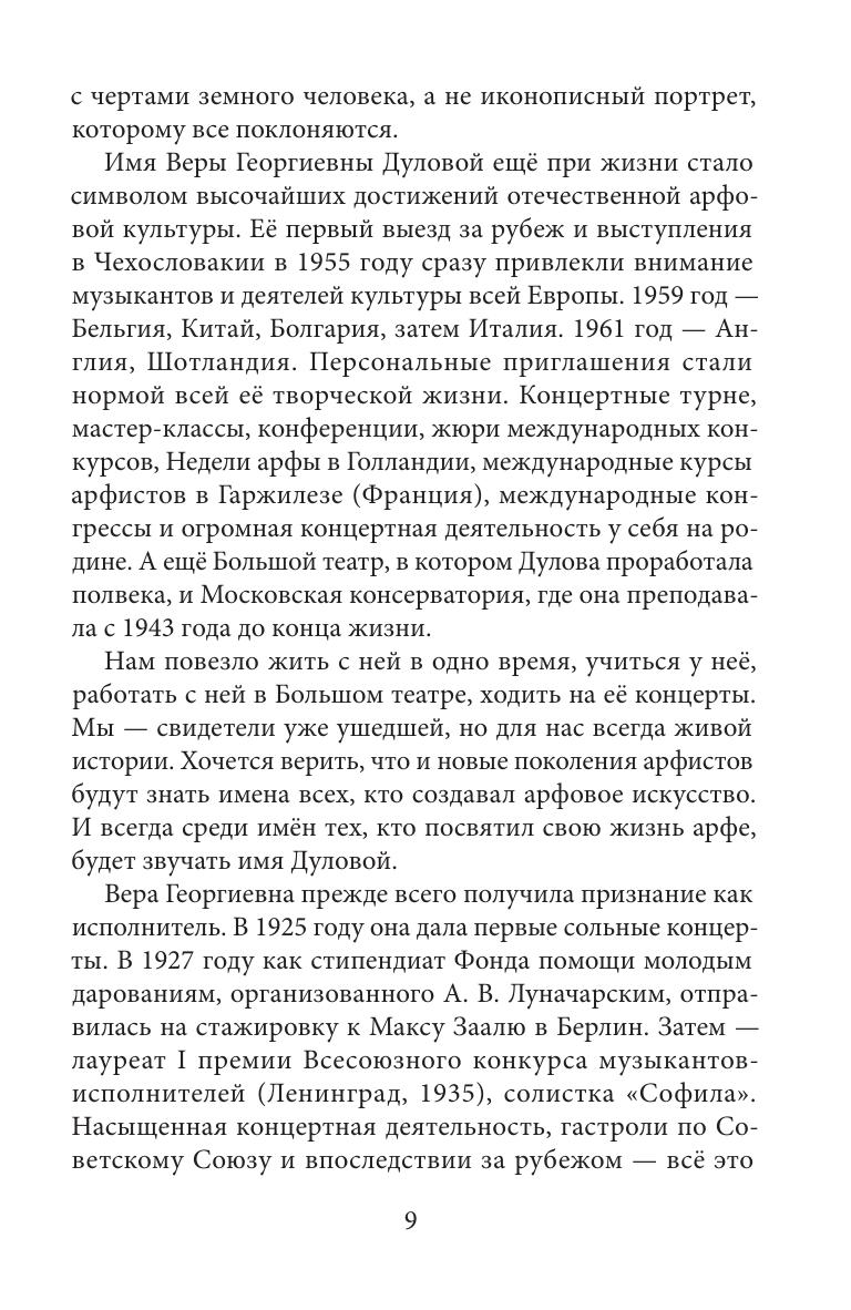 Имя В. Дуловой является символом высочайших достижений арфового искусства 20 века не только в нашей стране, но и во всем мире. Настоящая книга посвящена ее педагогической деятельности. В ней собраны воспоминания учеников Веры Георгиевны, композиторов, с которыми она сотрудничала, и зарубежных коллег, а также представлены документы из личного архива, фотографии.