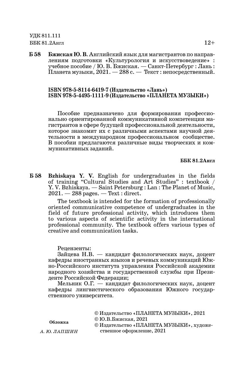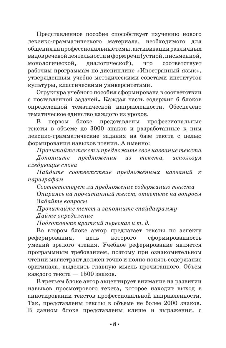 The textbook is intended for the formation of professionally oriented communicative competence of undergraduates in the field of future professional activity, which introduces them to various aspects of scientific activity in the international professional community. The tetbook offers various types of creative and communication tasks.