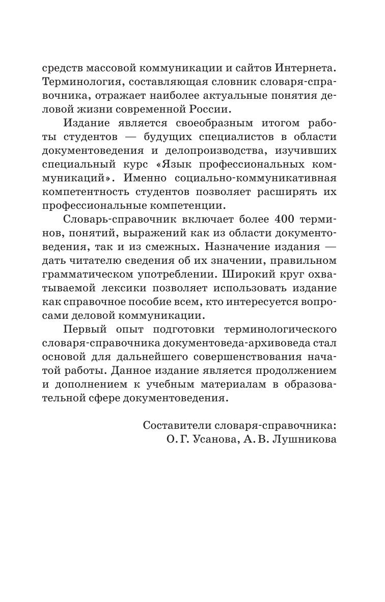 В словарь вошли наиболее употребительные в отечественной науке и практике документационные, педагогические, архивоведческие понятия и термины.