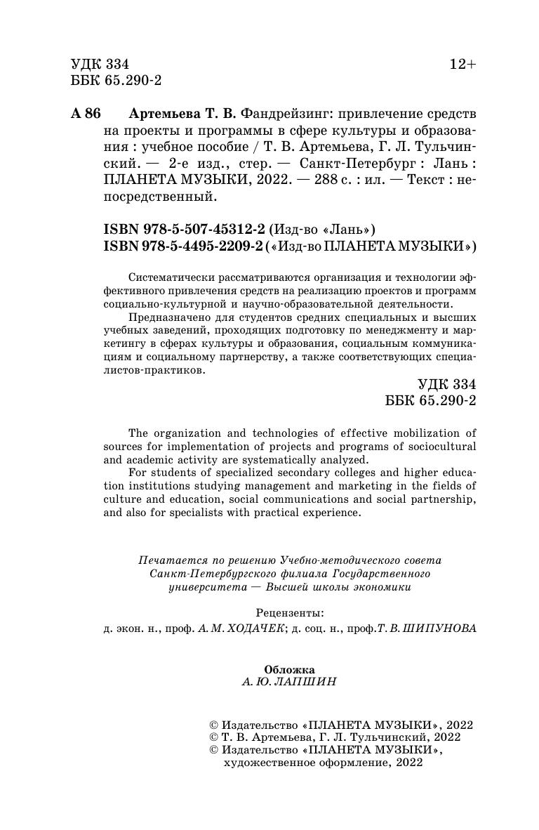 Систематически рассматриваются организация и технология эффективного привлечения средств на реализацию проектов и программ социально-культурной и научно-образовательной деятельности. Предназначено для студентов средних специальных и высших учебных заведений, проходящих подготовку по менеджменту и маркетингу в сферах культуры и образования, социальным коммуникациям и социальному партнерству, а также соответствующих специалистов-практиков.