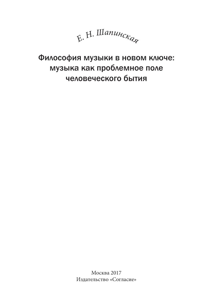Философия музыки в новом ключе: музыка как проблемное поле человеческого бытия