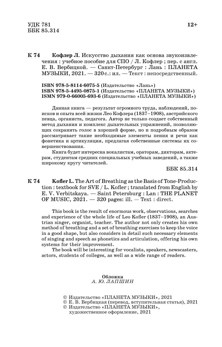 Данная книга – результат огромного труда, наблюдений, поисков и опыта всей жизни Лео Кофлера (1837–1908), австрийского певца, органиста, педагога. Автор не только создает собственный метод дыхания и комплекс дыхательных упражнений, позволяющих сохранить голос в хорошей форме, но и подробным образом рассматривает такие необходимые элементы пения и речи как фонетика и артикуляция, предлагая собственные системы их совершенствования.