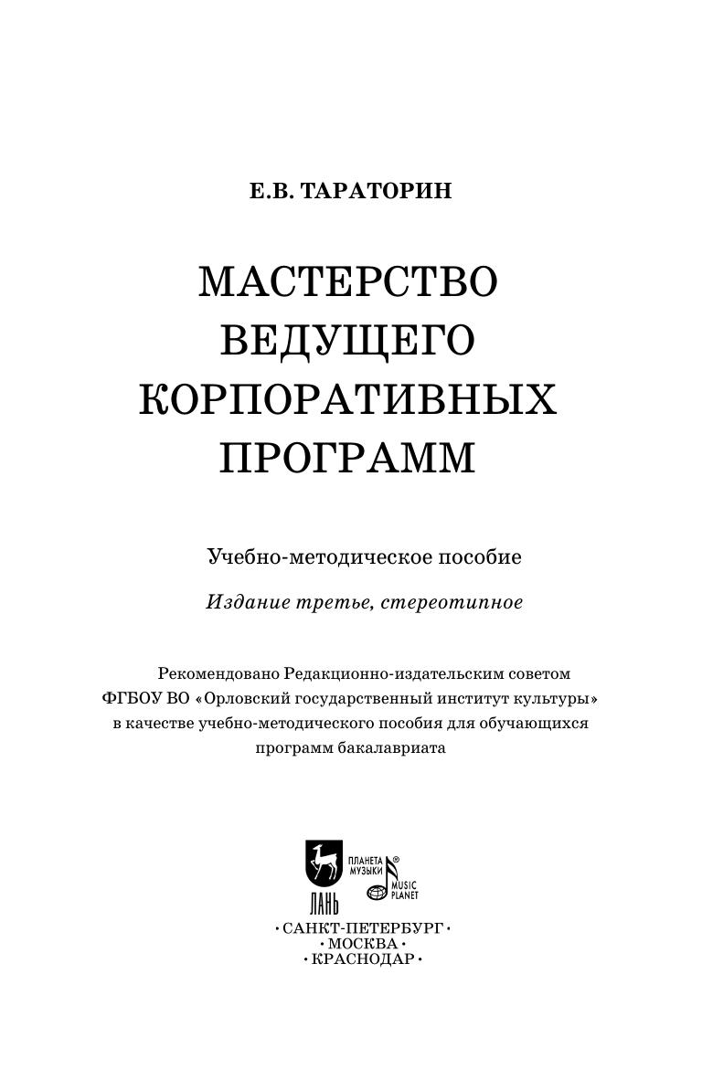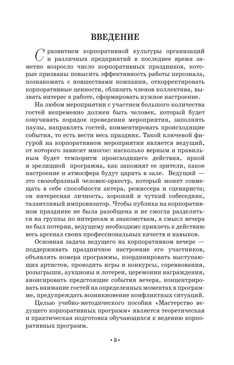 В настоящем учебно-методическом пособии раскрывается история развития и специфические особенности искусства отечественного конферанса, а также рассматриваются теоретические аспекты мастерства ведущего корпоративных программ. В заключении предлагаются примерные тестовые задания, терминологический аппарат (глоссарий), список основной и дополнительной литературы. Ряд приложений представлен комплексом рекомендаций и упражнений для обучения мастерству ведущего корпоративных программ и методическими материалами для составления конкурсно-игровой программы корпоративного вечера.