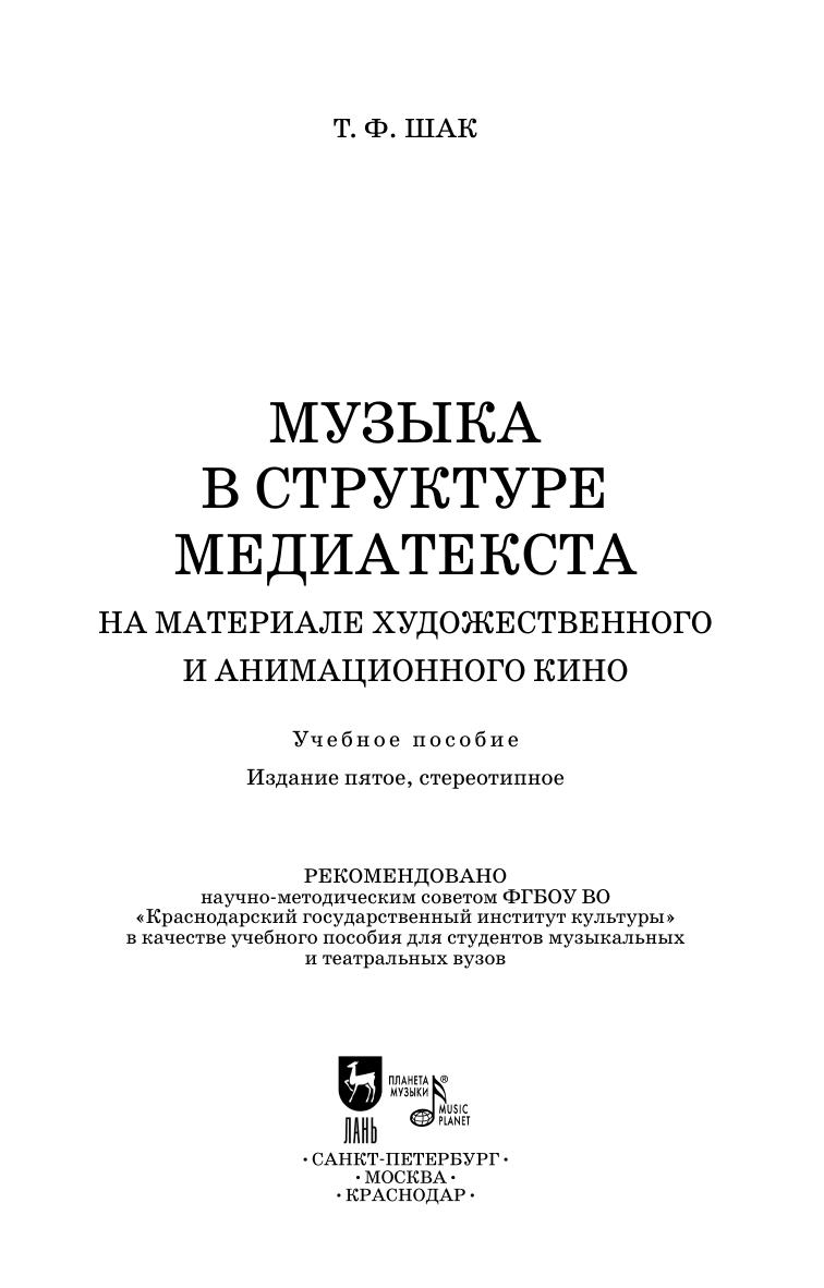 In the book on the material of fiction and animation films, functions are examined and methodological principles of music analysis in media forms of the text are founded. The interdisciplinary focus of the research makes its materials in demand in the scientific, pedagogical and practical aspects for a wide range of specialties: musicologists, composers, cinema historians, music sound producers, theater, film and television directors, multimedia directors, media educators, music journalists, music designers.
