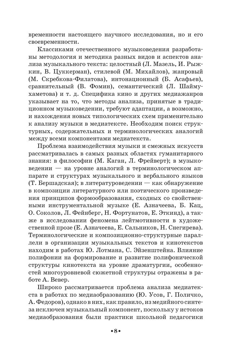В книге на материале художественного и анимационного кино рассматриваются функции и обосновываются методологические принципы анализа музыки в медийных формах текста. Междисциплинарная направленность исследования делает его материалы востребованными в научном, педагогическом и практическом аспектах для широкого круга специальностей: музыковеды, композиторы, киноведы, музыкальные звукорежиссеры, режиссеры театра, кино и телевидения, режиссеры мультимедиа, медиапедагоги, музыкальные журналисты, музыкальные дизайнеры.