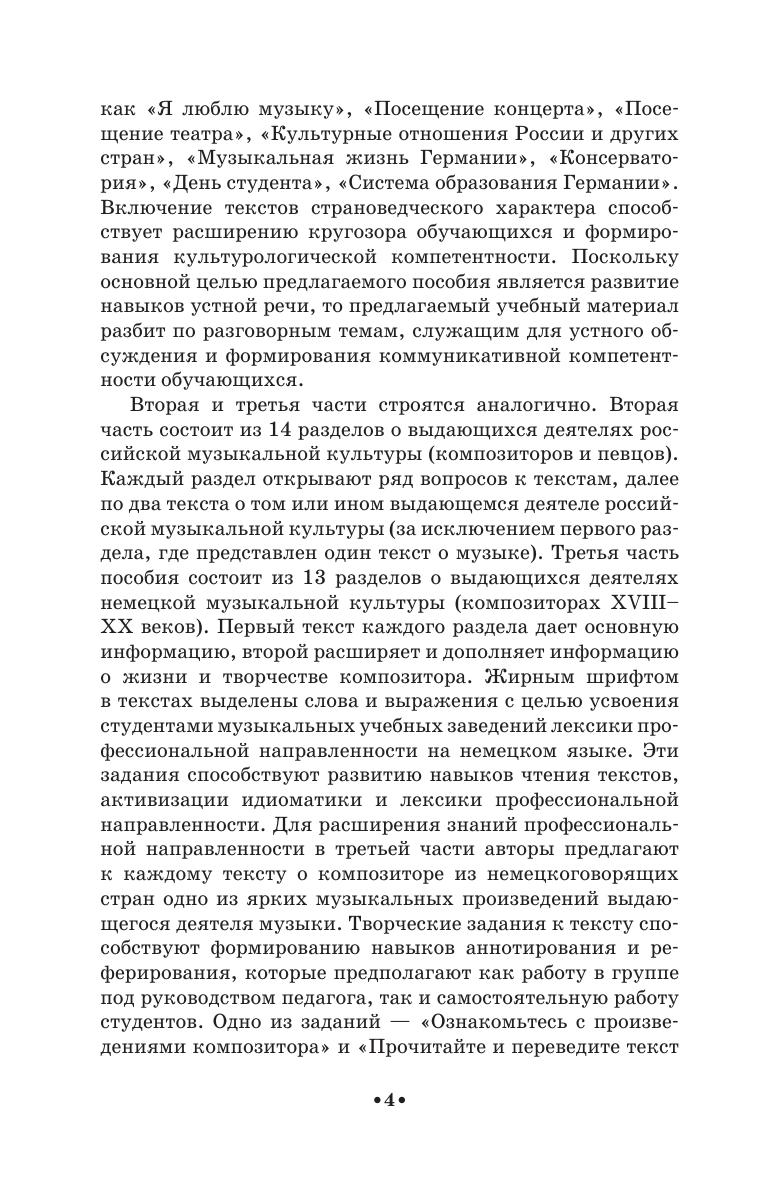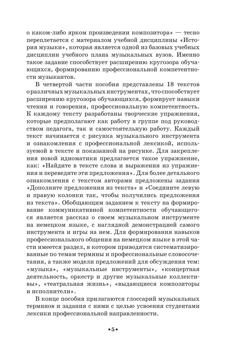Основная цель предлагаемого пособия — развитие навыков устной речи, чтения текстов профессиональной направленности, расширение вокабуляра, что предполагает формирование коммуникативной компетентности специалиста сферы музыки.В учебном пособии представлены различные тексты, способствующие расширению кругозора обучающихся, формированию навыков чтения и говорения, профессиональной компетентности. К каждому тексту разработаны творческие упражнения, которые предполагают как работу в группе под руководством педагога, так и самостоятельную работу.Данное издание адресовано студентам и педагогам музыкальных учебных заведений.
