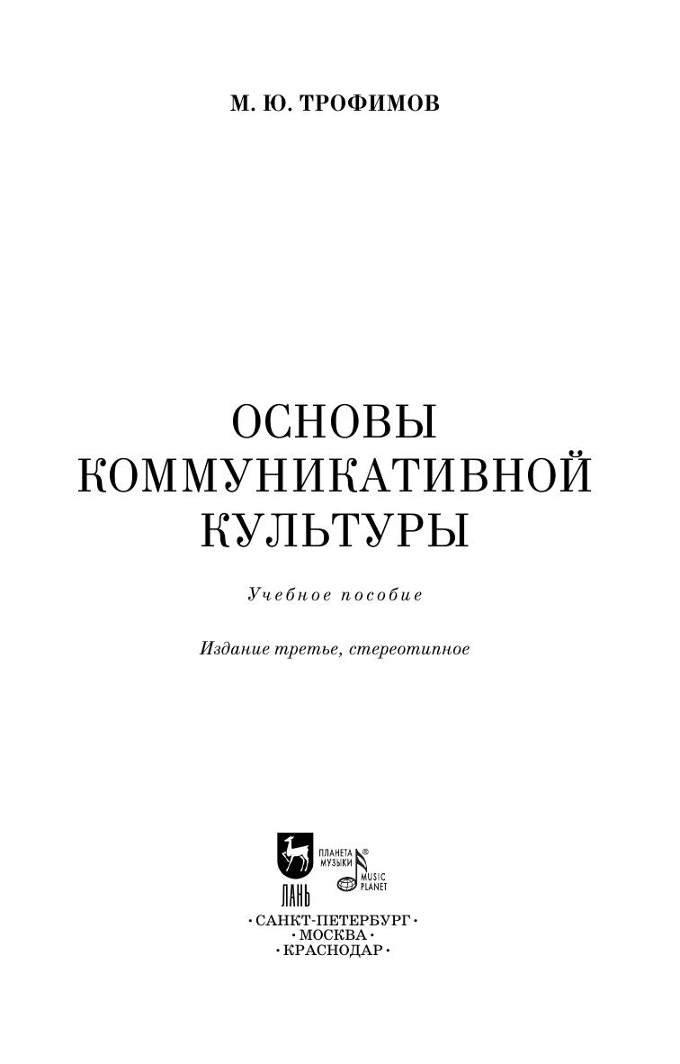 В данном издании осмысливаются теоретические и практические аспекты межличностной коммуникации, описываются как известные, так и авторские приемы коммуникативного взаимодействия. Учебное пособие подготовлено для творческих направлений бакалавриата по дисциплине «Основы коммуникативной культуры». Содержание проблем, отраженных в пособии, акцентируется преимущественно в психологической области. Книга адресована студентам, аспирантам, преподавателям, а также широкому кругу читателей, интересующихся вопросами коммуникативной культуры и межличностной коммуникации.