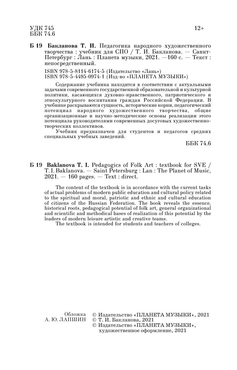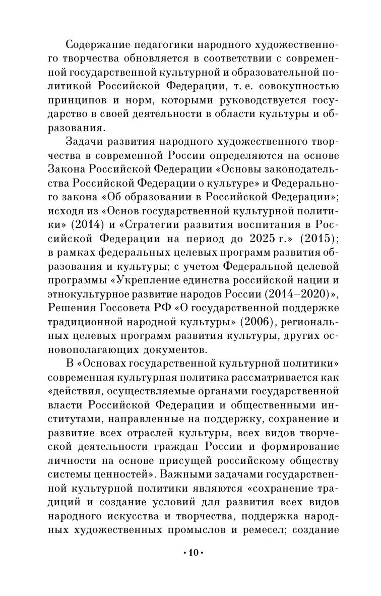Содержание учебника находится в соответствии с актуальными задачами современного государственной образовательной и культурной политики, касающихся духовно-нравственного, патриотического и этнокультурного воспитания граждан Российской Федерации. В учебнике раскрываются сущность, исторические корни, педагогический потенциал народного художественного творчества, общие организационные и научно-методические основы реализации этого потенциала руководителями современных досуговых художественно-творческих коллективов.
